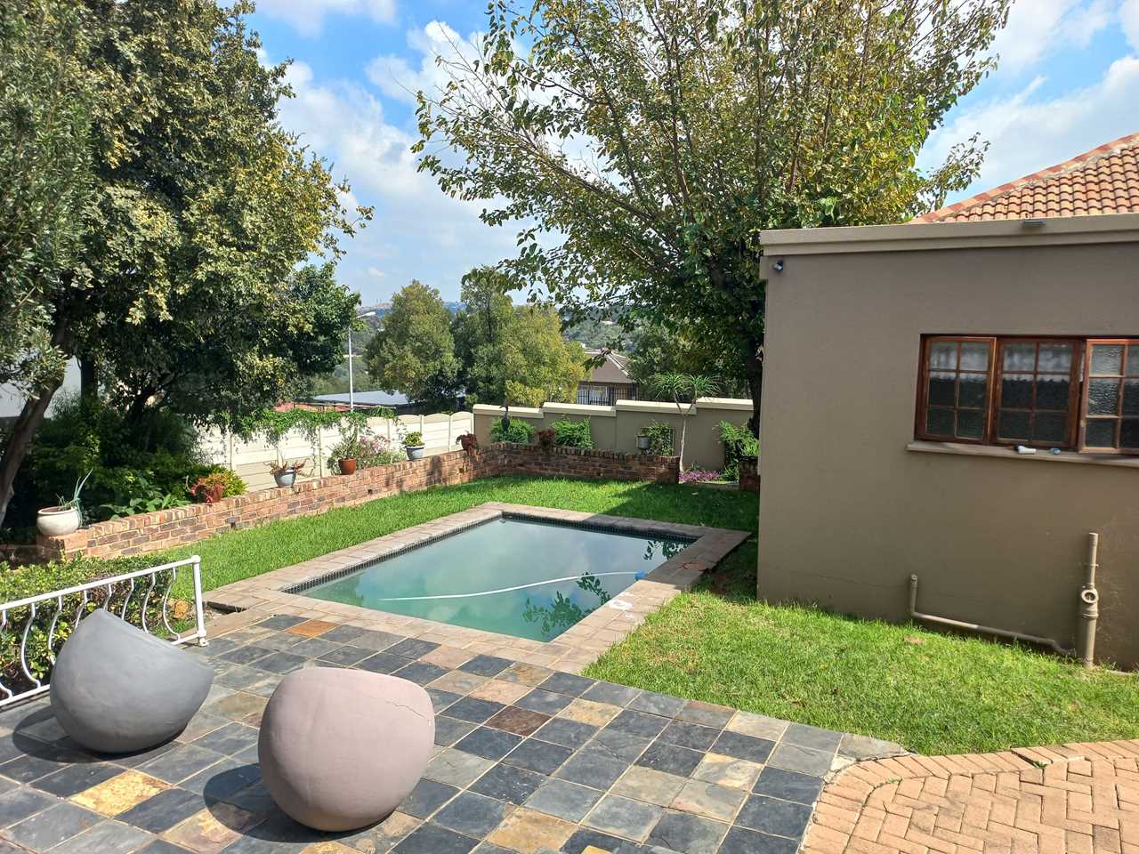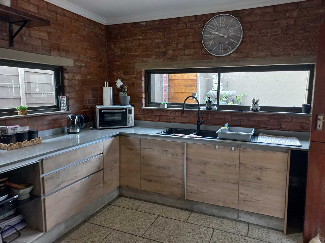 An absolute gem of a property. Set in a very nice street with easy accessibility to Alberton City and surrounding schools, hospitals,etc. Extremely neat mixing old world charm with modern kitchen and bathrooms. A very well maintained home which will fulfill all your needs from living space, cooking in a fabulous kitchen, storing groceries in the pantry cupboard and entertaining your family and friends in the outside entertainment area and you can also cool down on those hot days in the splash pool. Three spacious bedrooms, 2 sparkling bathrooms. A lounge with dining section. There is a JO JO water tank for water savings. One garage with extra parkling space under the carport. This home comes with many special features so make an appointment to view as soon as possible.