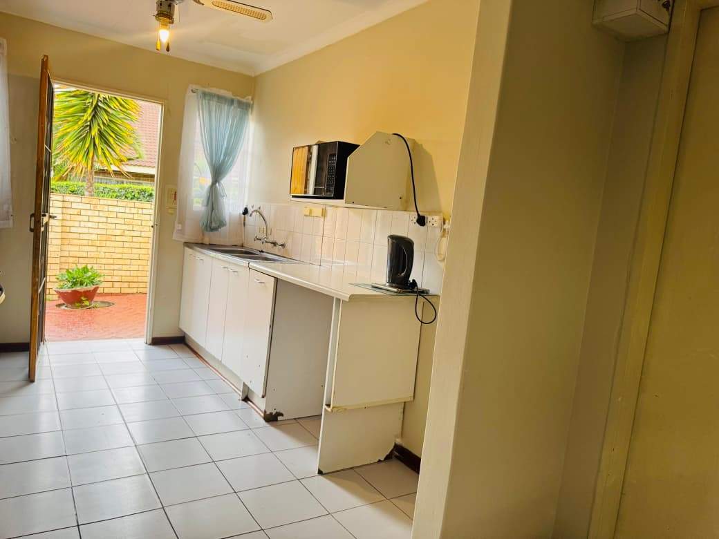 A lovely open plan lounge and dining room with a built in fire place. Open plan kitchen with built in cupboard space and the townhouse also has a double garage. There is a sliding door in the lounge that leads to a private initmate garden.