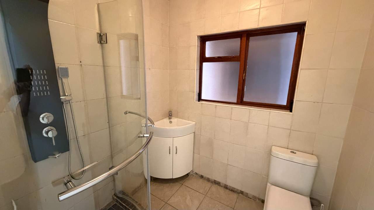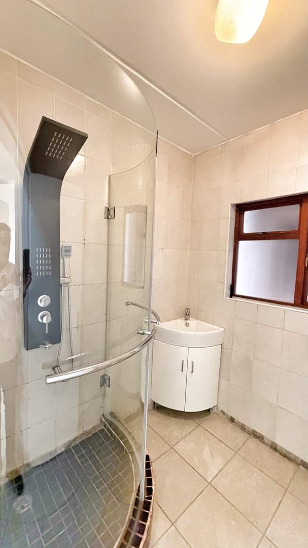 There are two well-sized bedrooms, both fitted with built-in cupboards, and a neat bathroom with shower, basin, and toilet.