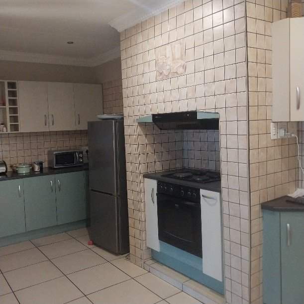 Three Bedrooms (all with built-in cupboards), two Bathrooms (one En-suite), a Kitchen (with built-in cupboards, and a stove), a Laundry, a Lounge with (a Fireplace and Aircon), and an Entertainment area with a built-in braai).