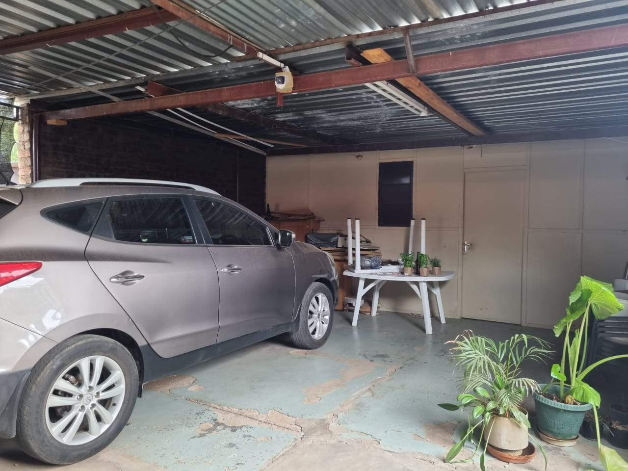 Outside you will find a small garden, a carport for four vehicles, and a storeroom.