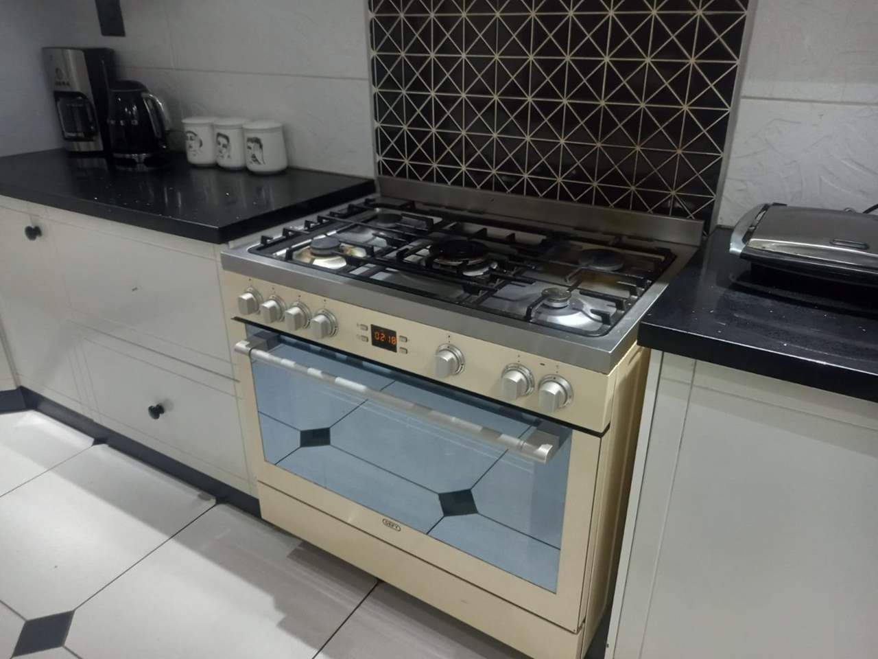 • Modern Kitchen with full wall-to-wall cabinets & stylish marble countertops