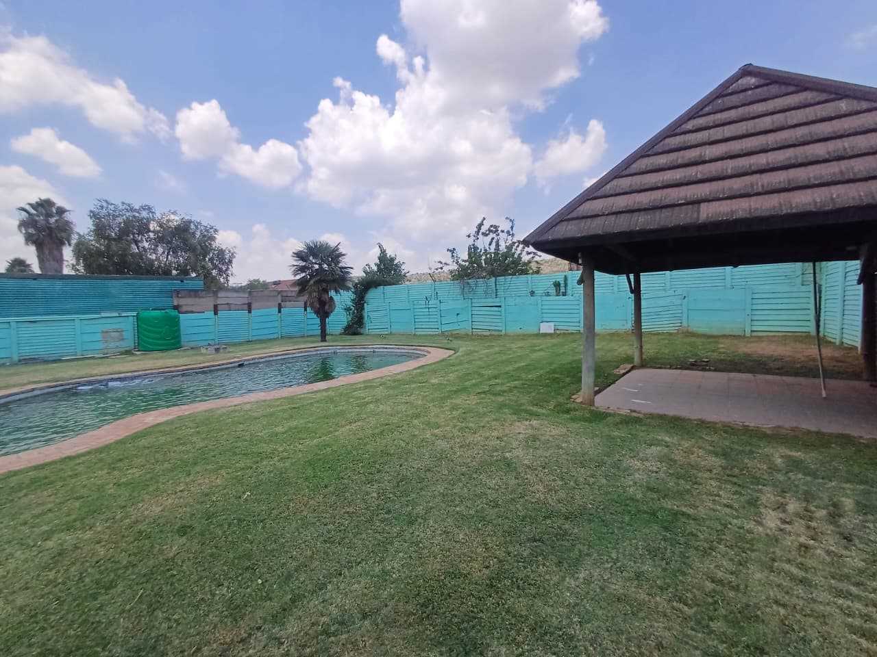Set on a large stand, this property truly stands out with its impressive outdoor features. Enjoy summer days around the swimming pool and entertain friends and family under the charming thatch roof Lapa. The yard is neat and well-maintained, offering plenty of space for children and pets to play.