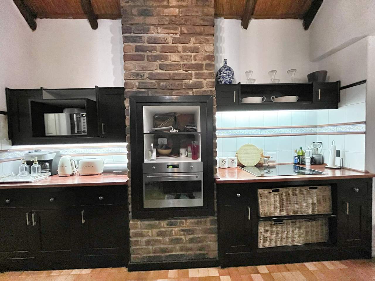 The kitchen is a standout feature with a farm-style yet modern feel, boasting double porcelain sink, versatility for both gas and electric cooking with both electric and gas hobs, a double eye-level oven, and cleverly concealed spaces for appliances. A generous pantry helps keep everything tidy and organized.