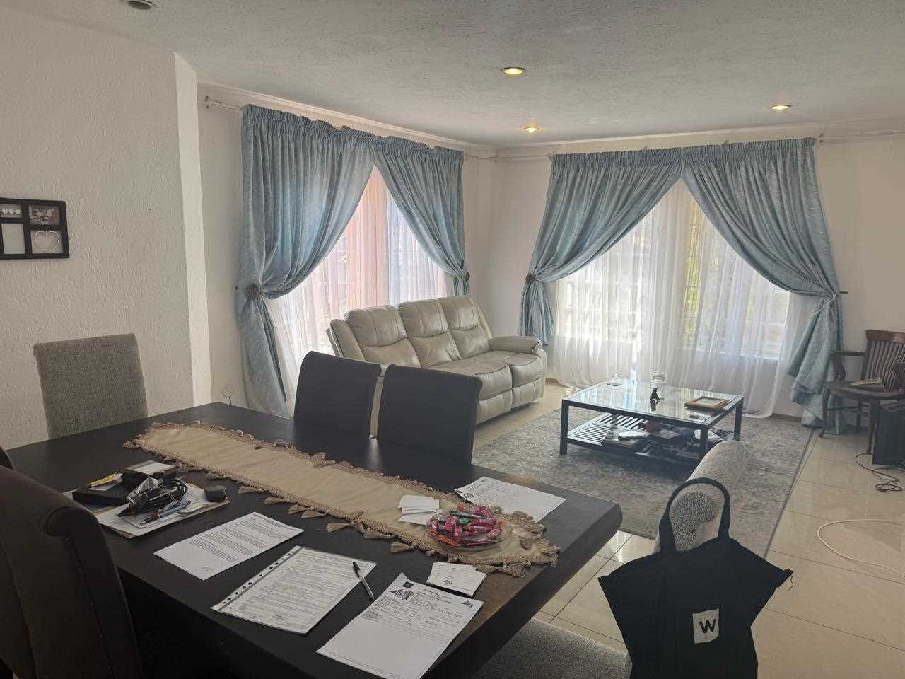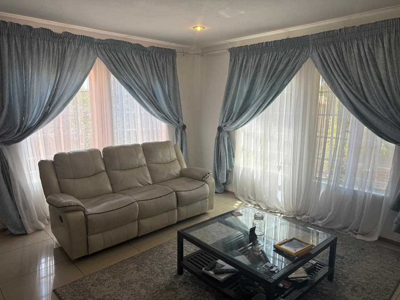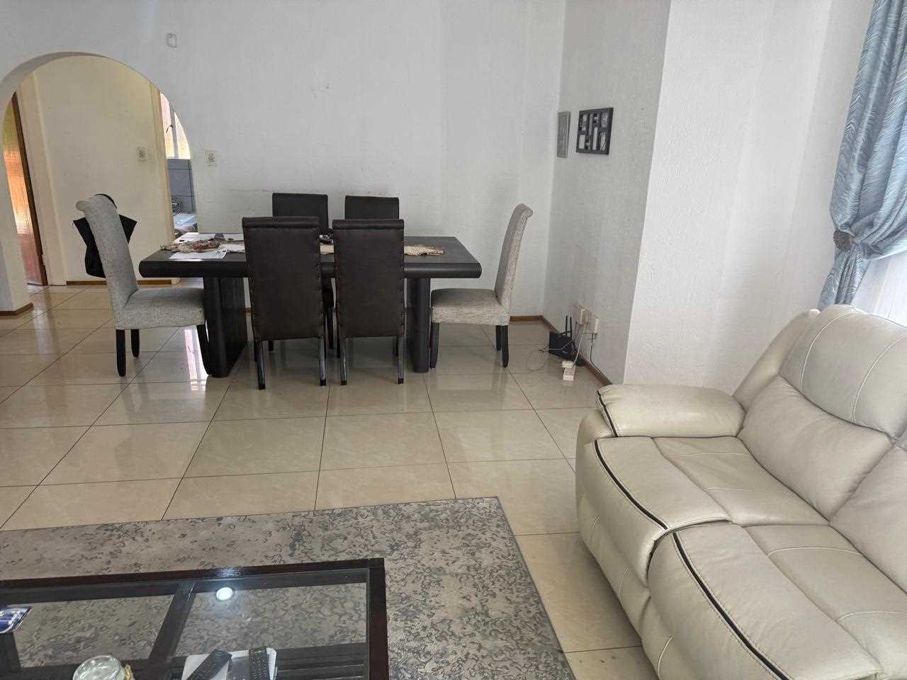 SPACIOUS to the extreme. You can house your family in absolute comfort and style in this townhouse, which also allows pets with permission. Make your way up the stairs entering into a huge lounge and dining room and then the kitchen is absolutely fabulous and just imagine this it has the added bonus of a fireplace, imagine congregating with family and friends around the dinner table in absolute warmth and comfort during those cold winter months. The kitchen also opens onto a huge balcony with built in braai. The three bedrooms are all a good size, one of which opens onto the upstairs balcony. All the bedrooms have built in cupboards. The main bedroom has en suite shower and the guest bathroom also has shower and the other amenities needed. There is a lock up garage. There are only three units in the complex. Well situated in a quiet street, but not far from shops and schools. Don't sleep on this one. Call now to make an appointment for a viewing.