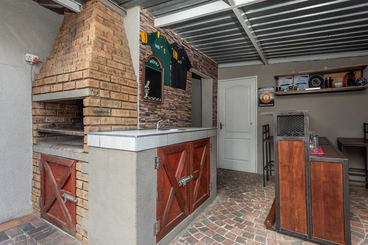 - Enclosed Entertainment Area – Roll-down shutters, built-in braai, basin, bar space, outside toilet and laundry area