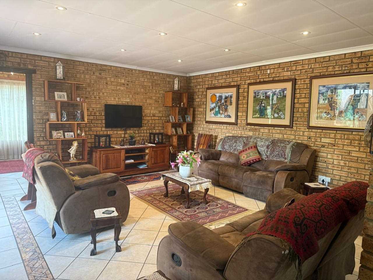 From the entrance hall you will be led to the Lounge, diningroom, Tv area. A excellent work from home study or a 5th bedroom. All a good size with built in cupboards and really a good size. The bathrooms are all neat and sparkling. There are 3.5 bathrooms There is a very nice guest suite or will serve very well for gran or the teenager who wants his/her own space. Excellent kitchen with more cupboards than you can fill.