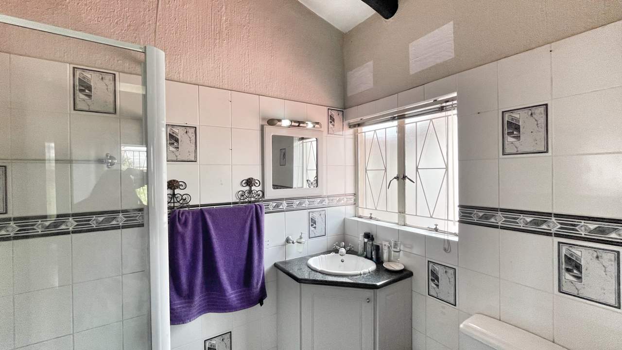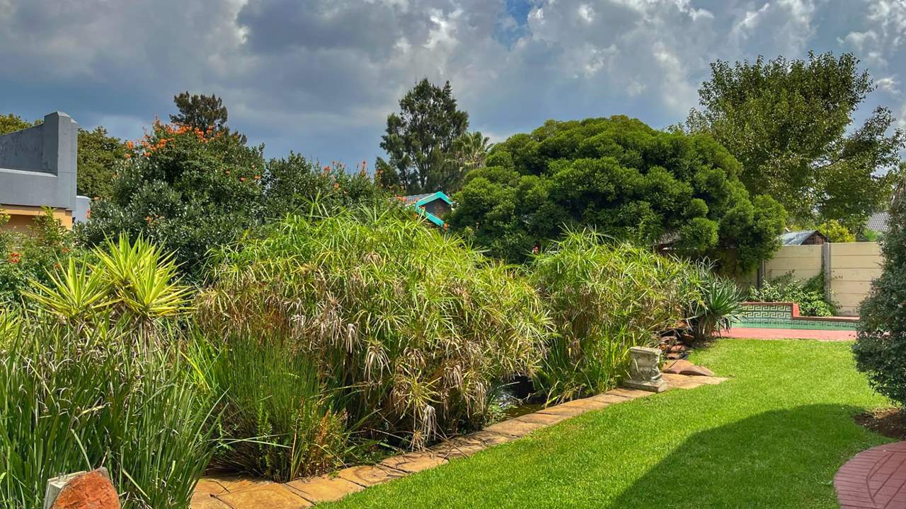 As you enter the property, you are welcomed by a beautifully maintained garden that creates a warm and inviting first impression. Stepping inside, a huge entrance hall greets you, large enough to be used as an additional living area. To the right, the main lounge flows effortlessly onto an enclosed lapa with built-in bar and braai, overlooking the pool and tranquil garden with feature pond — the ideal setting for relaxing weekends and entertaining guests.