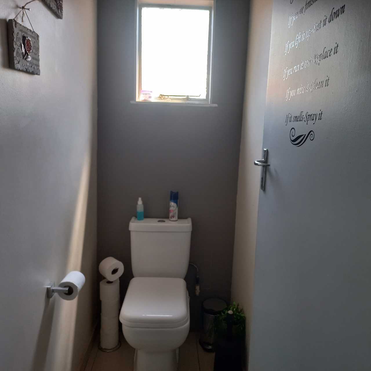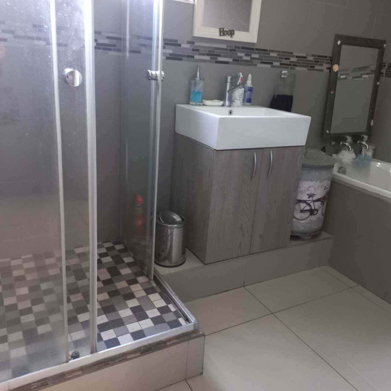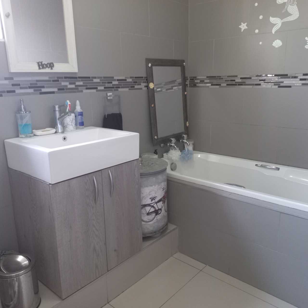 lounge with sliding door onto a patio and private garden as well as a guest toilet. On making your way upstairs you will find 3 very spacious bedrooms all with tiled floors and built in cupboards. The bathroom has a separate toilet and then there is a bath and shower. The main bedroom has a separate dressing room which should you want to do this you can add an en suite bathroom as there is enough space in the main bedroom to accommodate the built in cupboards. Added bonus is a double garage. This unit is going for an excellent price so be quick and call today in order to make an appointment for viewing this property which is well situated near to shops and schools. Be quick!!!