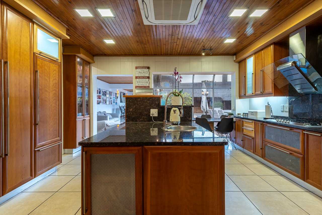 - Stunning Solid wood kitchen with centre island, MIELE appliances including gas stove, eye level ove, built in coffee machine, built-in fridges, microwave & scullery with built in dishwasher + built-in chip fryer