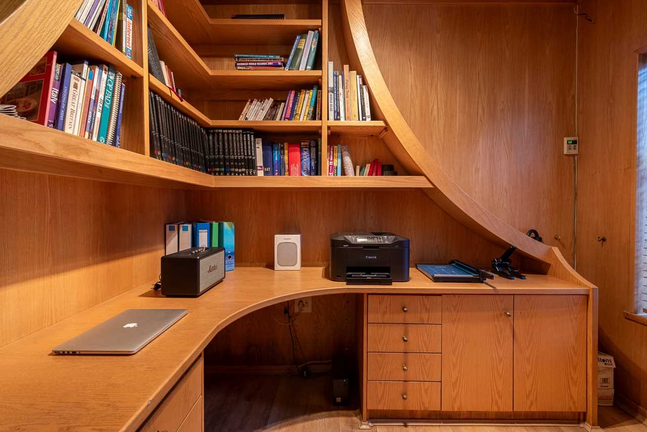 - Beautiful TV lounge with built-in display cabinets and tv unit, anthracite fireplace & access to the back garden