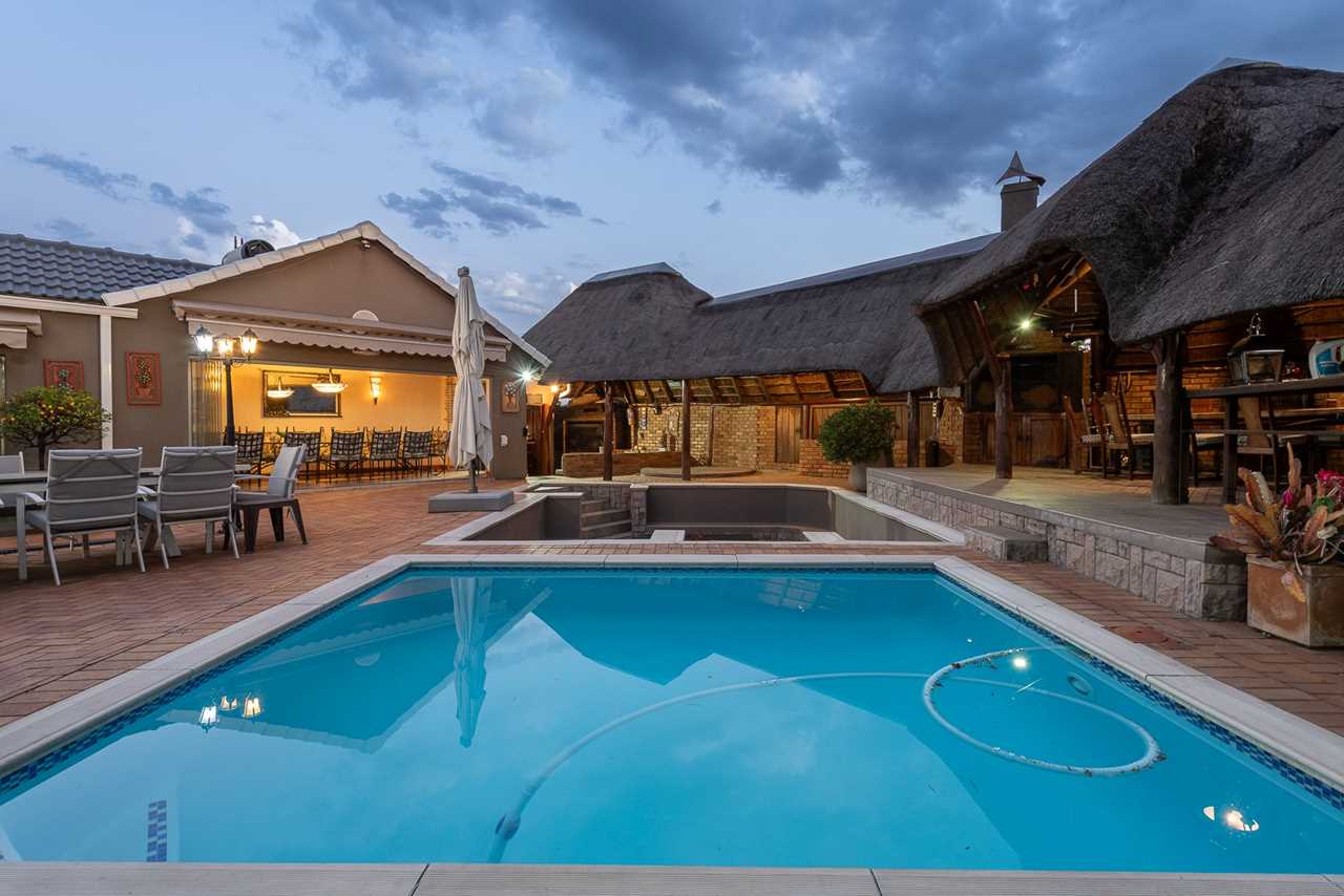 - Large thatched lapa with another built-in braai overlooking a sparkling splash pool (solar panels, blanket & heat pump)