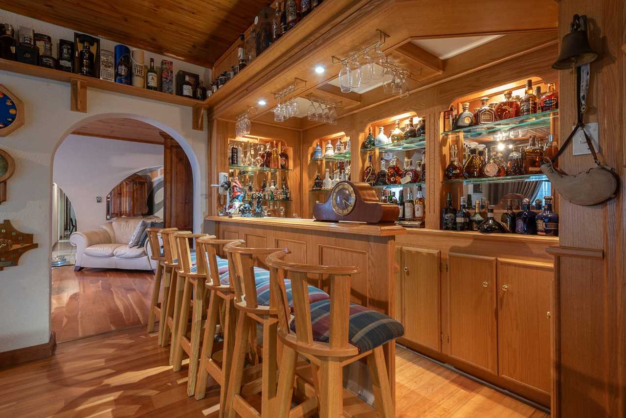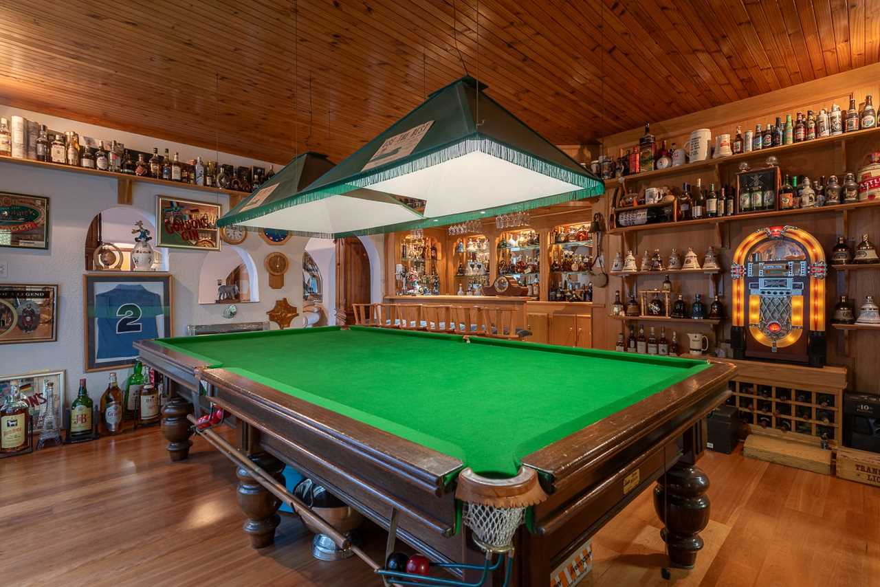 - Large indoor bar room with built-in bar, display shelving & professional snooker table (included)