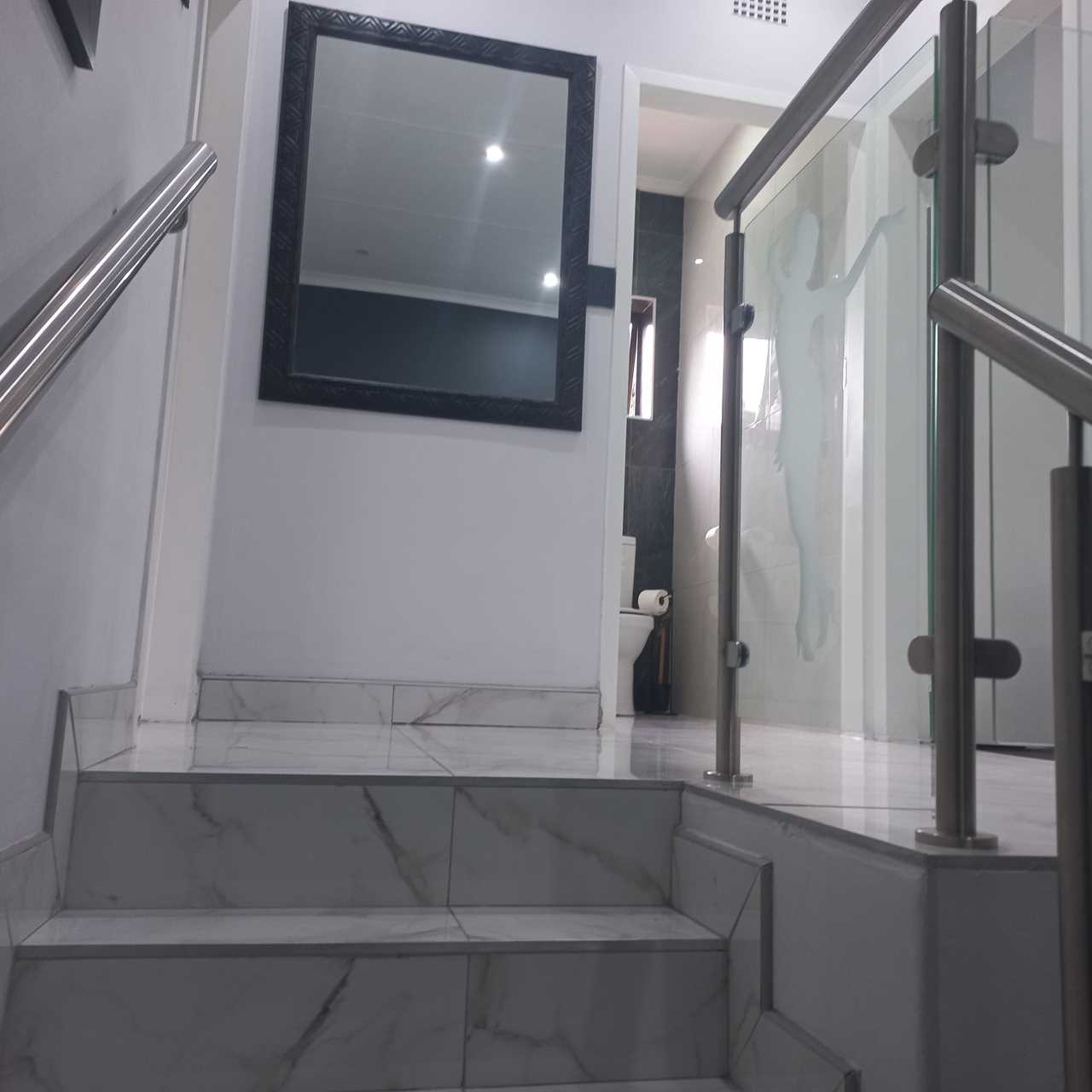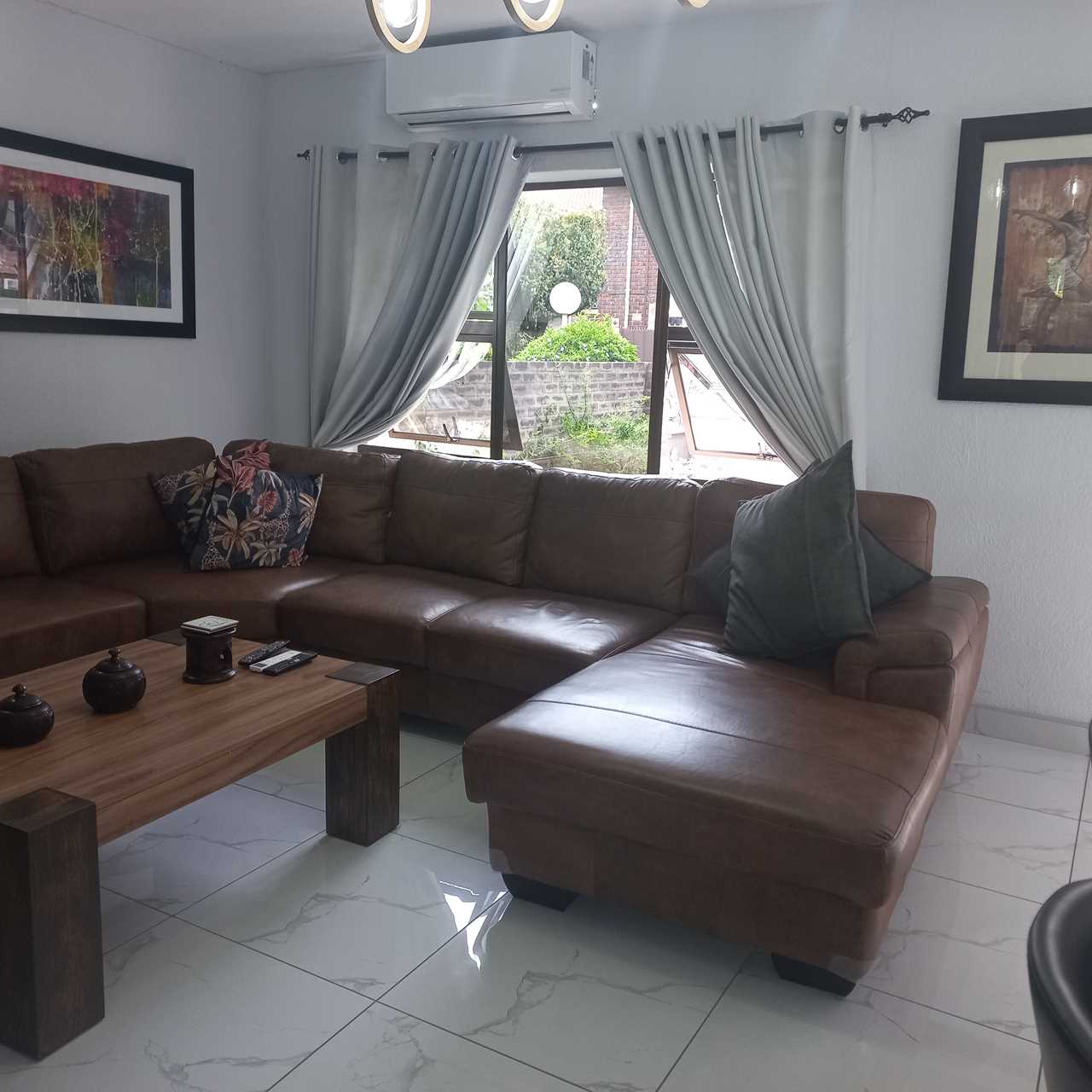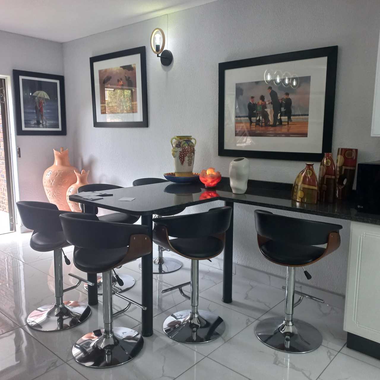 On entering this absolutely fabulous unit, your heart will definitely skip a few beats. Not a thing to be done, just bring your furniture and move in. Absolute privacy for a fabulous garden space. Make your way into the entrance onto the dining room then to the kitchen with cupboards galore. Granite tops and the floors are beautifully tiled. The lounge is spacious and leads out to the front garden. Upstairs you will find a large main bedroom with a fabulous en suite bathroom and also lots of built in cupboards. The two other bedrooms are each also a good size with built in cupboards. The unit has been looked after with love and care and upgraded to an excellent standard. The guest bathroom is modern and sparkling. All this plus 2 garages, of which one will house a bakkie or caravan comfortably. The complex is very well maintained and is within walking distance of all the shops, chemist, bottle store, restaurants and so much more. You will not need to use a car. Do not delay put this on your viewing list immediately and then call for an appointment and this unit will not be around long.