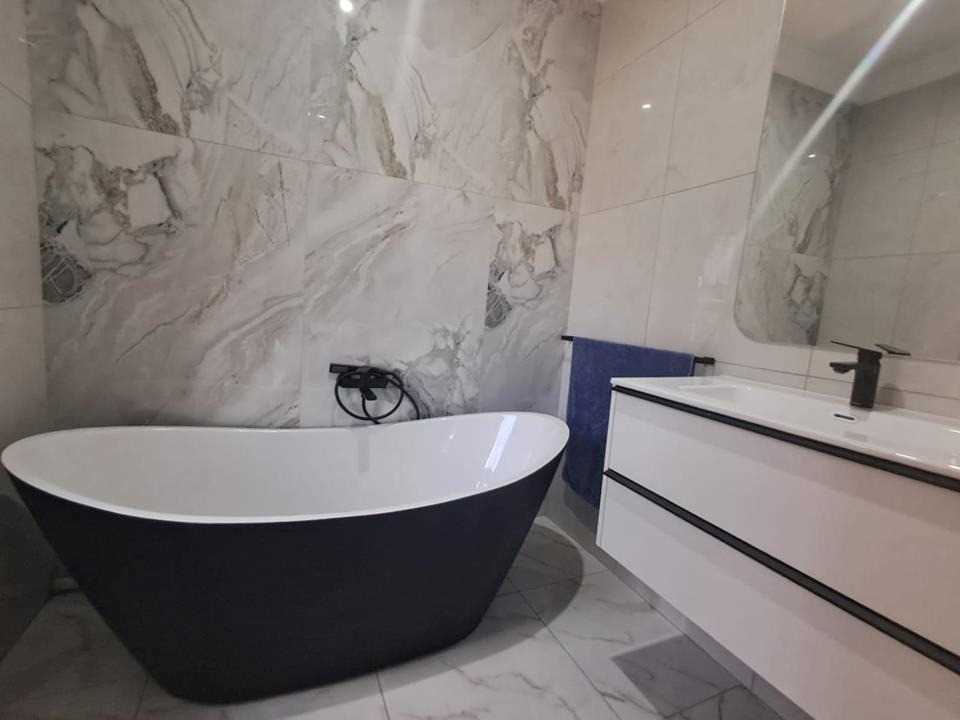 2.5 stylish bathrooms with modern fittings and feature walls
