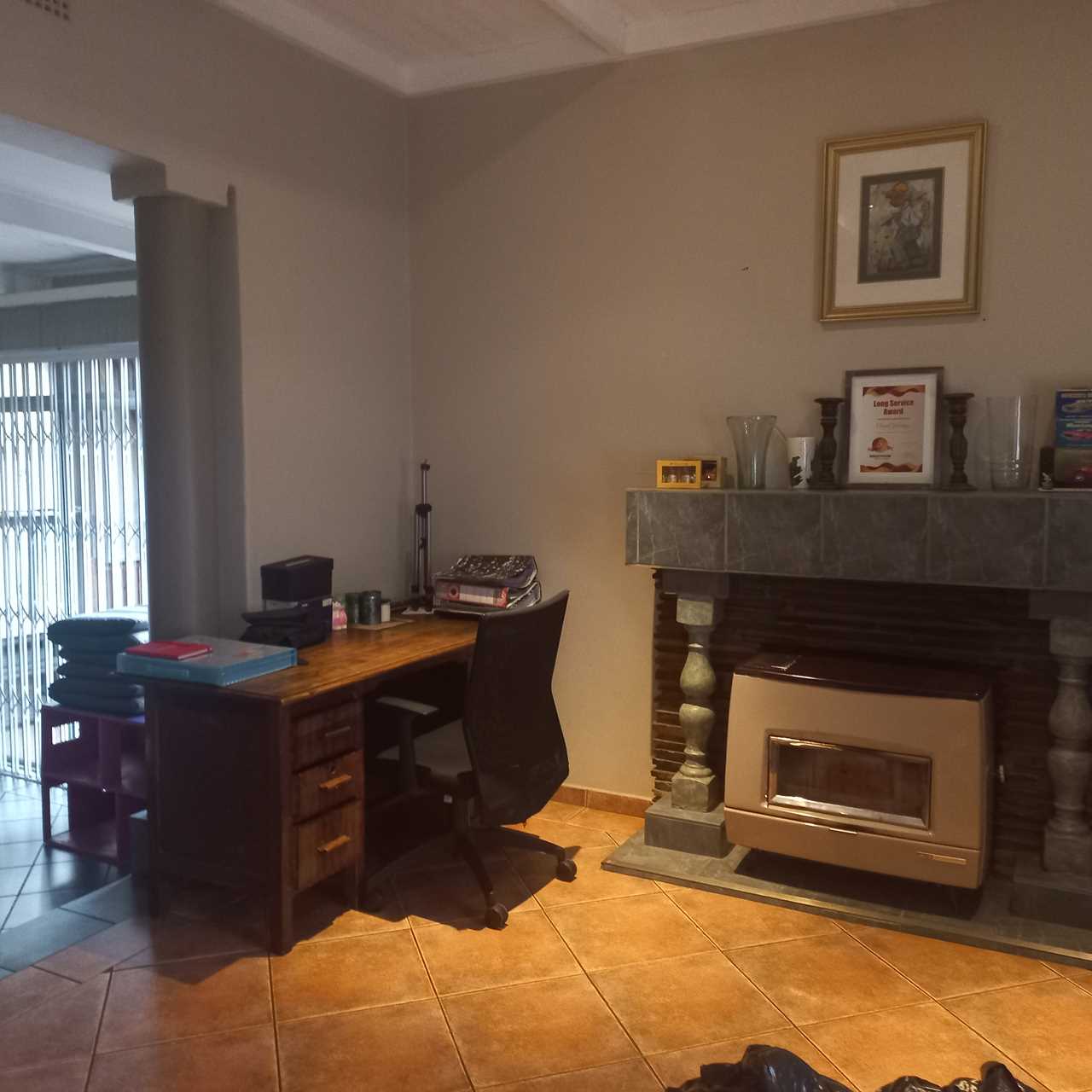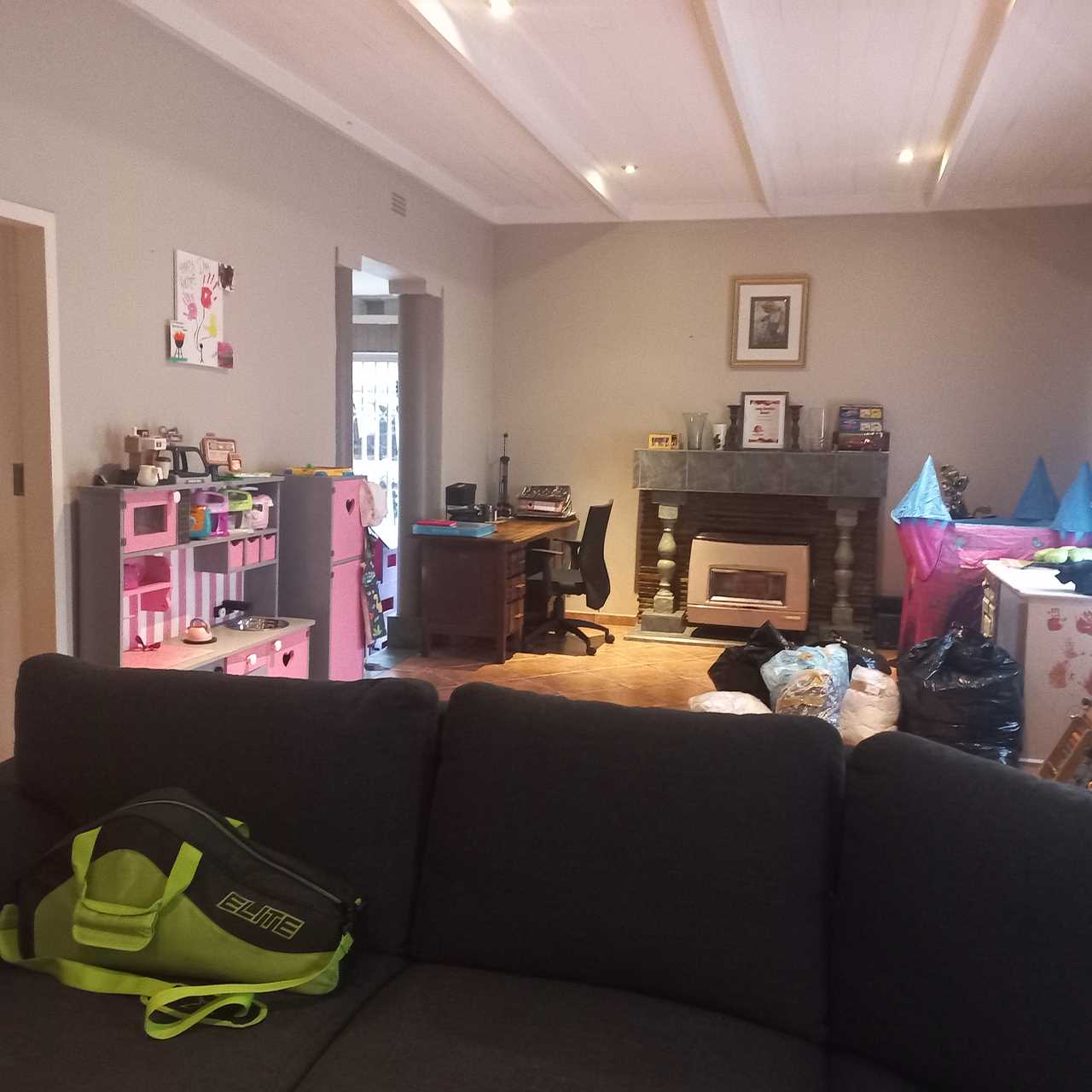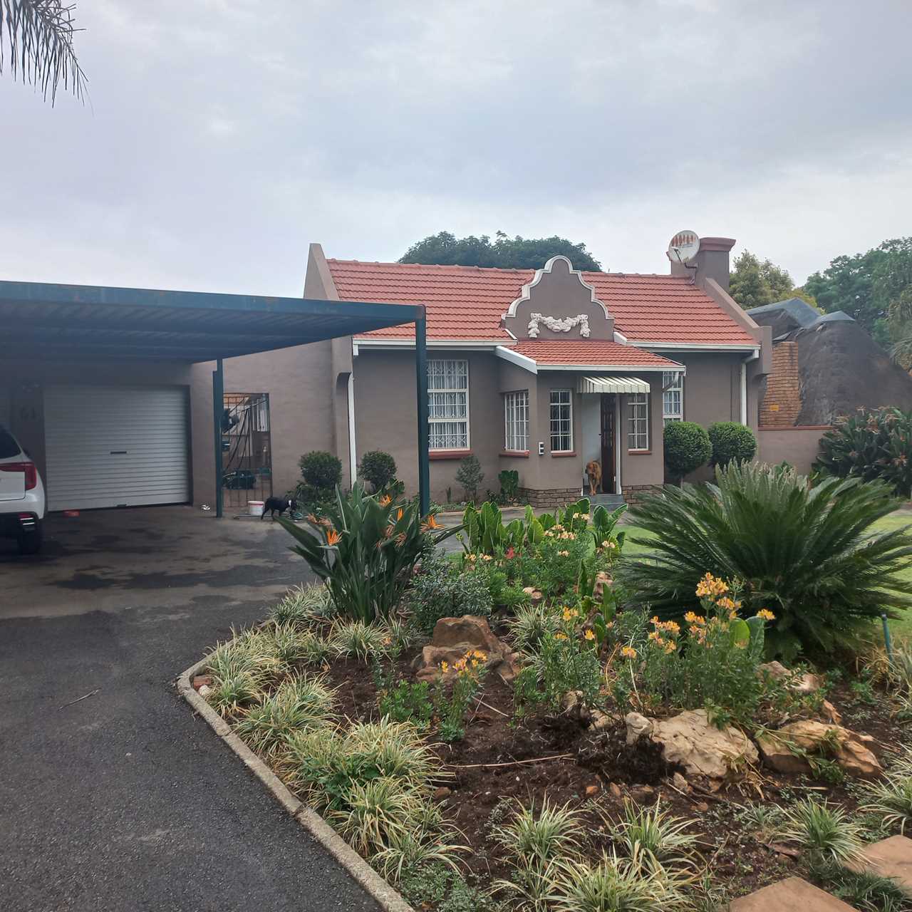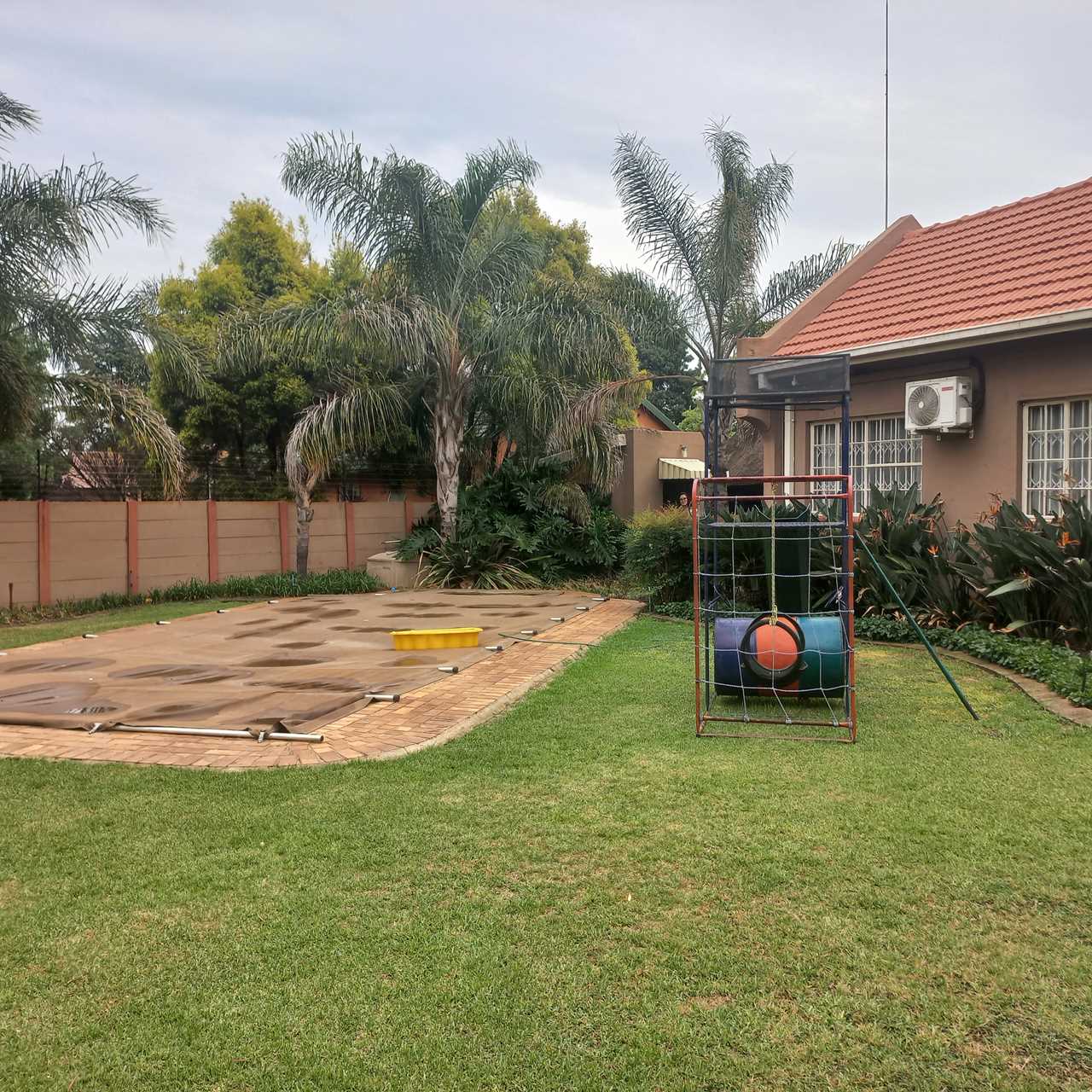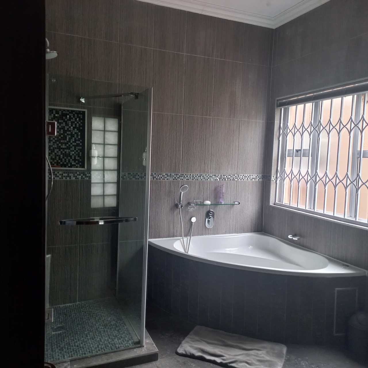 cupboards of which there are plenty. This open plan living area leads onto a huge thatched lapa where you can entertain family and friends to your hearts comfortably.. There is also an outside toilet which allows easy access from the lapa. The three bedrooms are all a good size. The main en suite is fabulous with bath and shower. The guest bathroom is also modern with corner bath and double basin vanity. Outside you will find a separate laundry with domestic quarters adjoining, this set up lends itself to being able to convert to a small flatlet or outside room for a teenager pad. The house has dual water heaters and the outside room has its own gas water heater. There is also a pool leading out from the lapa area. This is a must on your viewing list.