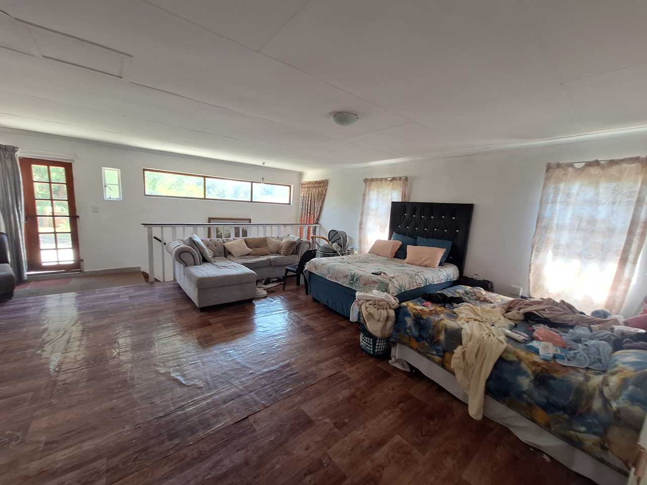 Main house comprises lounge and diningroom to a really good size kitchen with plenty of cupboards. From there you can make your way to 3 decent size bedrooms with built in cupboards - all floors tiled. There is one bathroom which has shower, toilet and vanity basin. Flat number one has an open plan lounge diningroom onto kitchen with guest toilet. Upstairs the are two bedrooms of which the main is huge. The bathroom is shower, toilet and vanity basin. The 2nd flat comprises bedsitter with dining and lounge area as well as bedroom all together then there is a small kitchenette. The property has two garages. There is a pool which will needs attention. The rental you obtain from the flatlets will go a long way in helping to pay the bond. Call today is interested for a viewing.