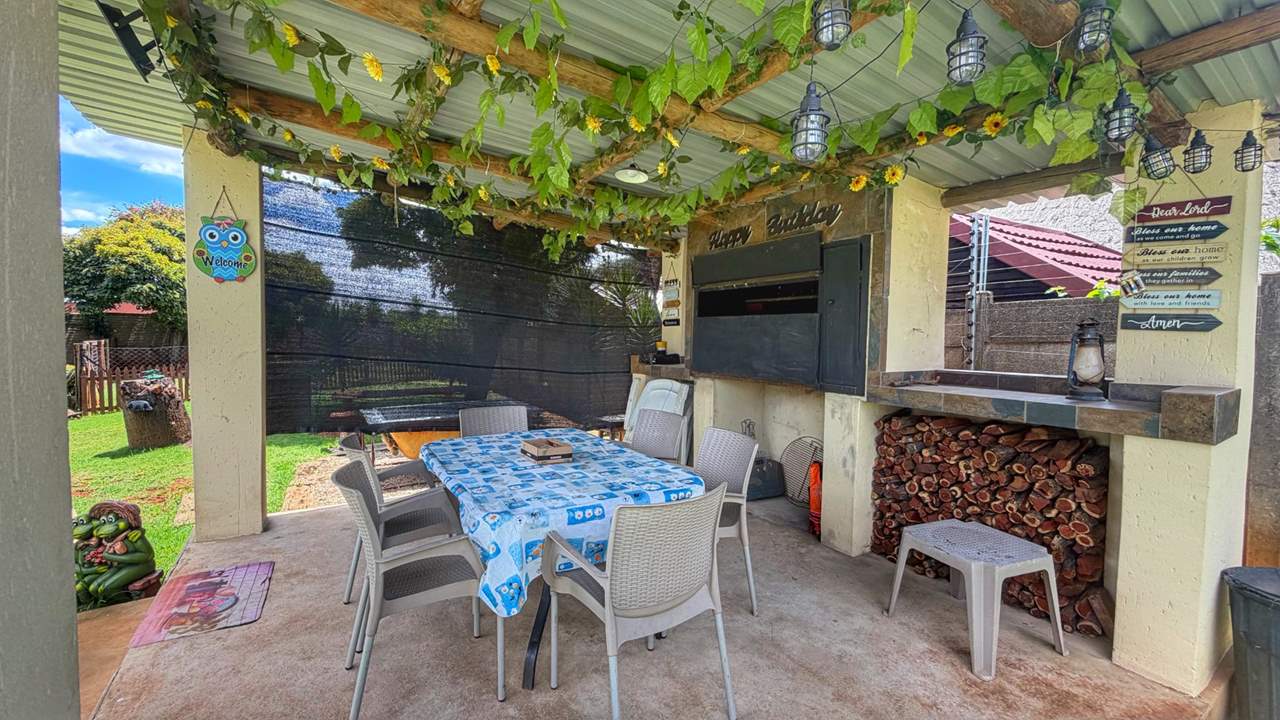 Step through the welcoming entrance hall and feel instantly at home. To the left, you’ll find a open-plan lounge and dining area, ideal for relaxed family evenings or hosting guests. The lounge flows seamlessly onto a patio with a built-in braai — perfect for year-round entertaining.