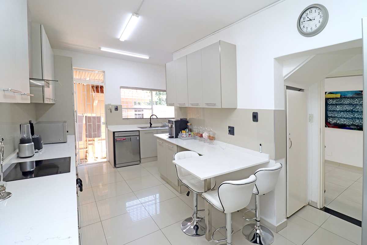 The magnificent kitchen, finished with white granite countertops, is both stylish and functional, while a guest toilet and a discreet helper’s suite with its own kitchen and bathroom complete the downstairs level. Elegant tiled flooring enhances the sense of space throughout.