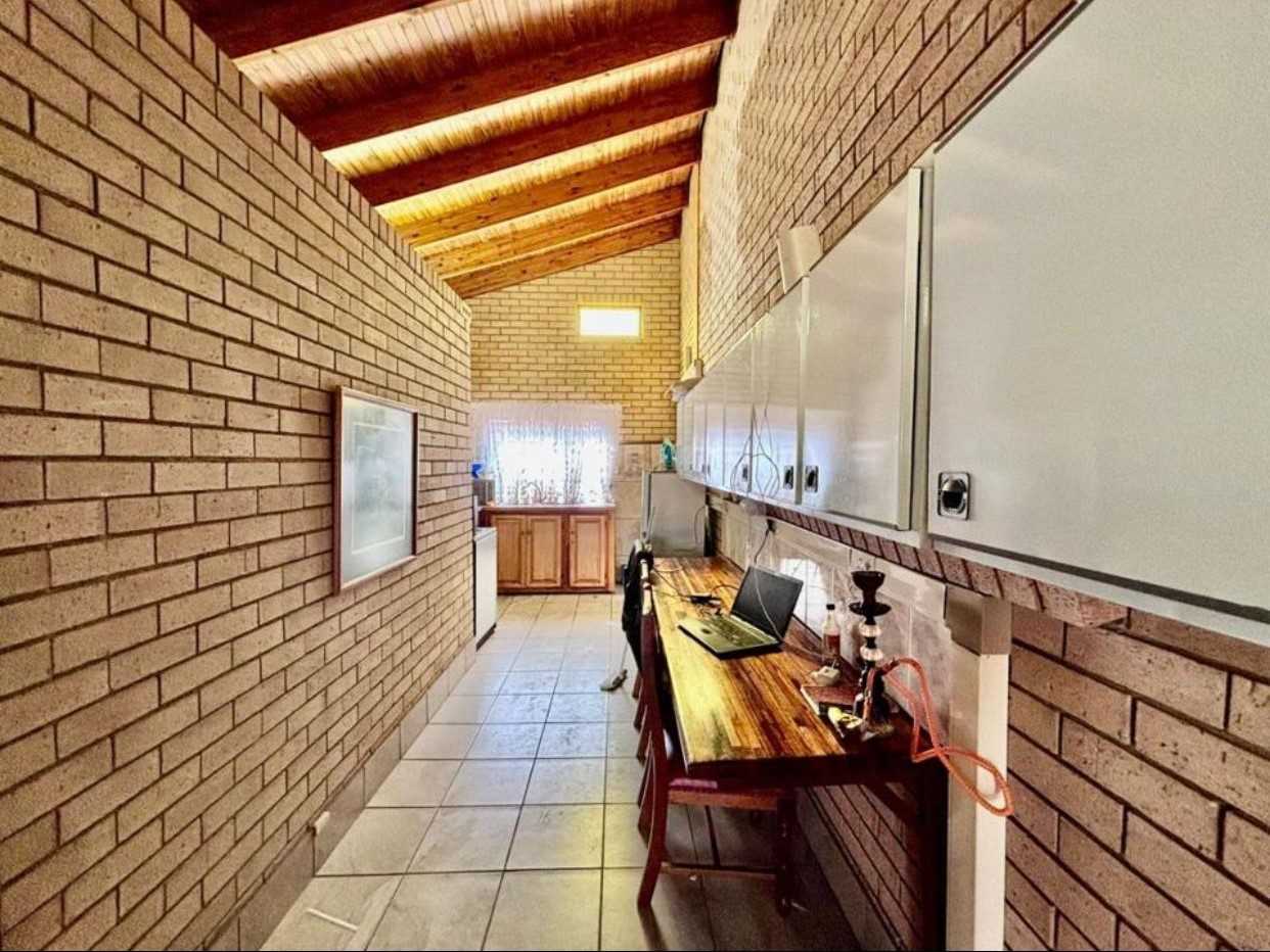 The flatlet is attached to the main house, featuring an open-plan layout with a bedroom, shower, and kitchenette—ideal for a home office, workshop, or rental unit.