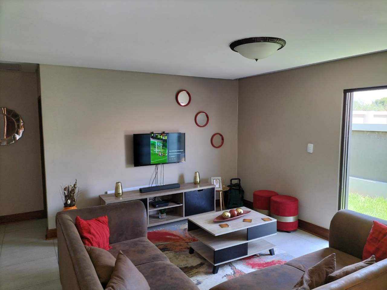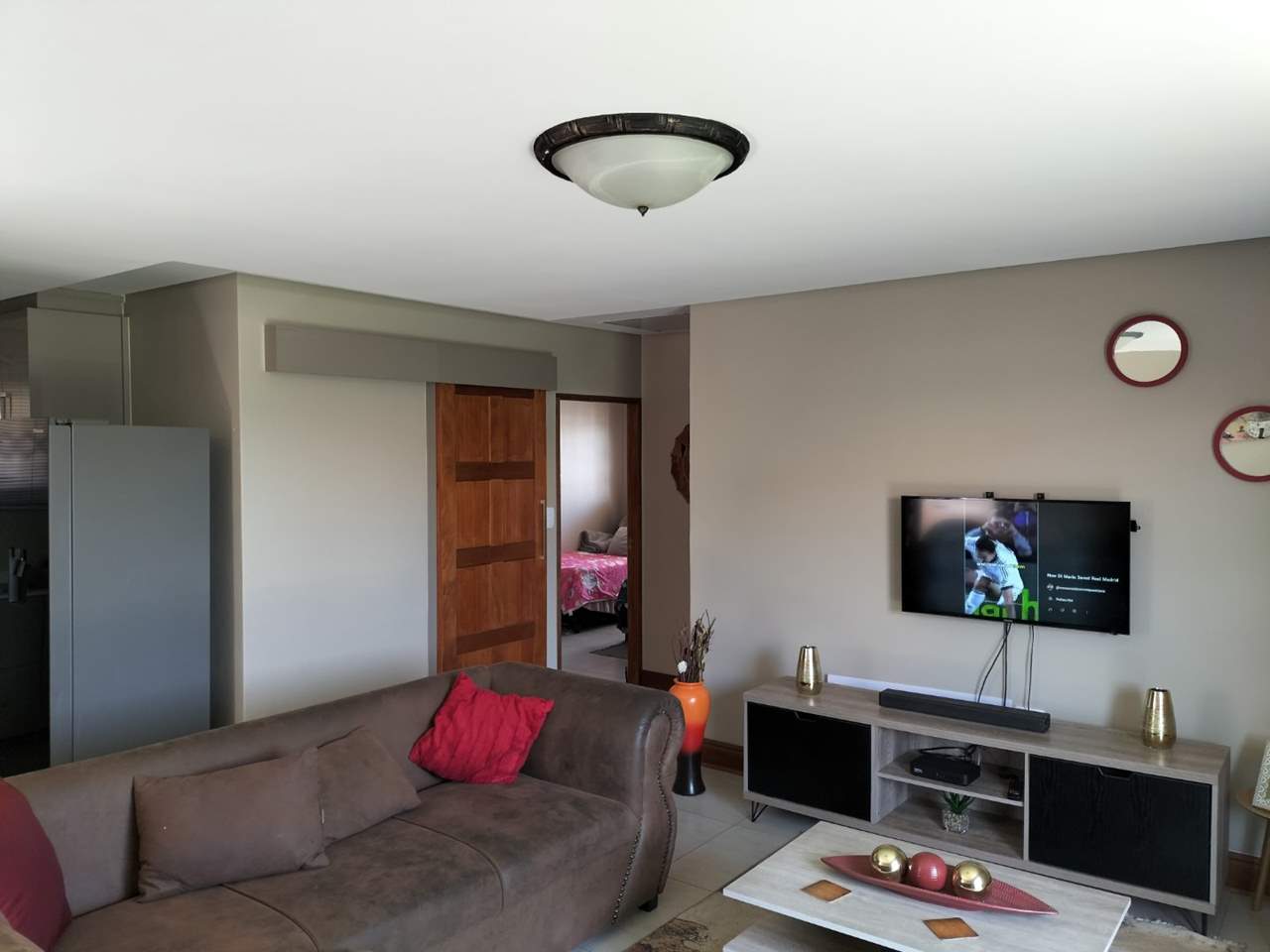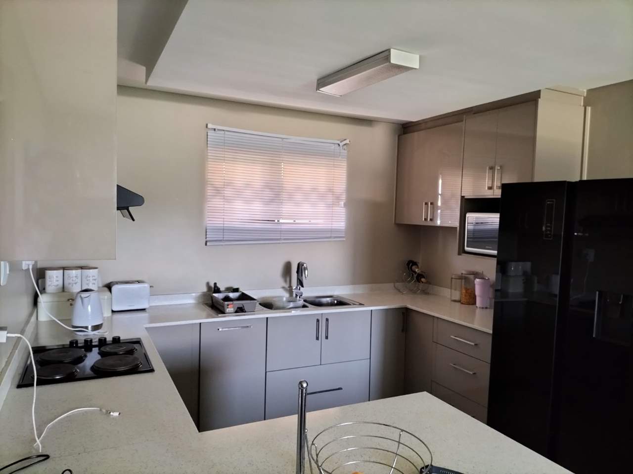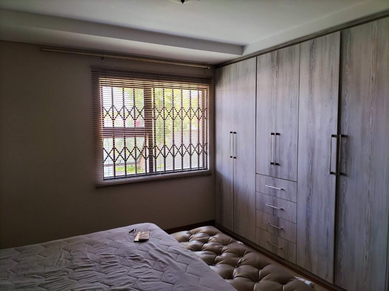 Two spacious bedrooms with built-in cupboards and two bathrooms.