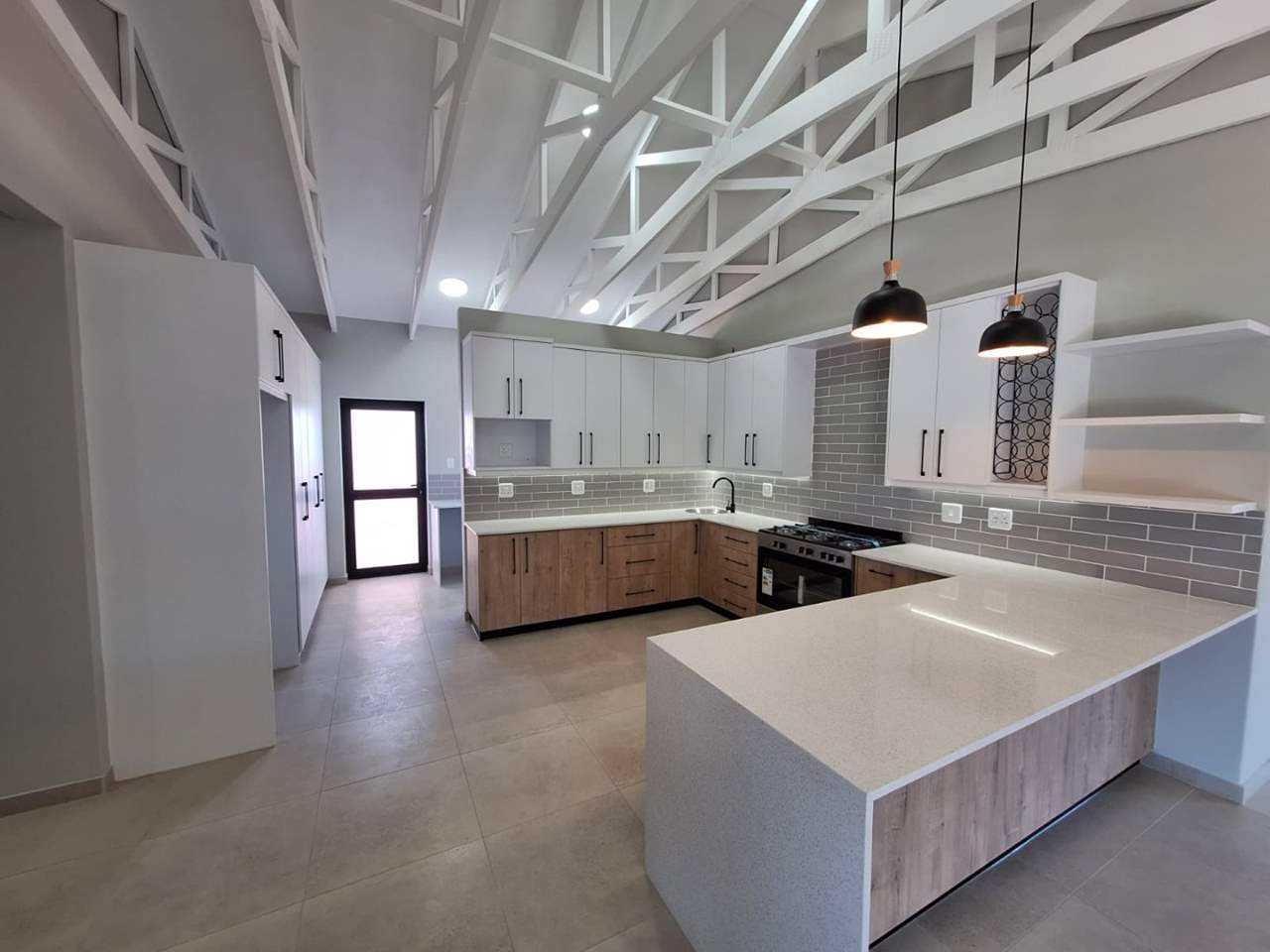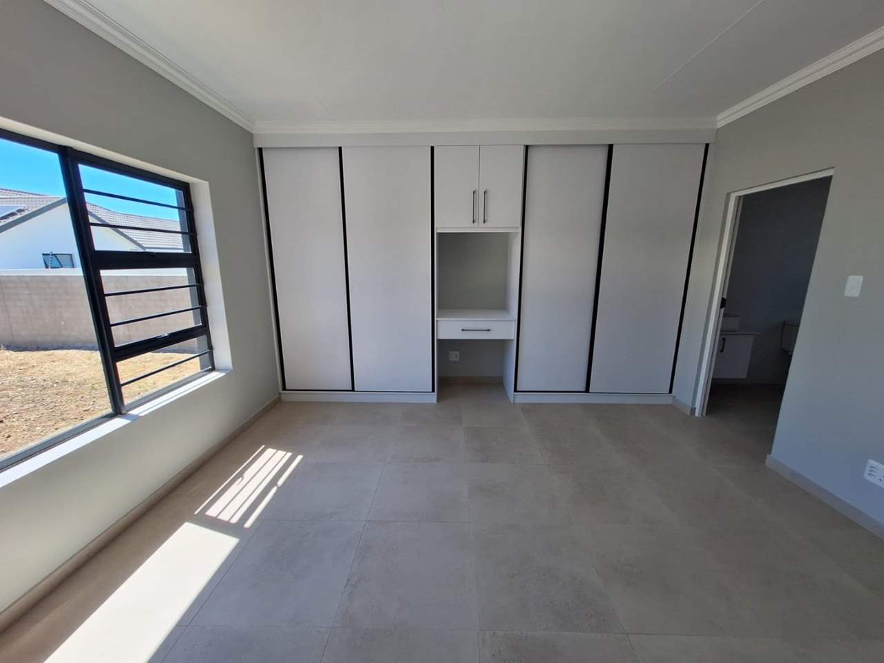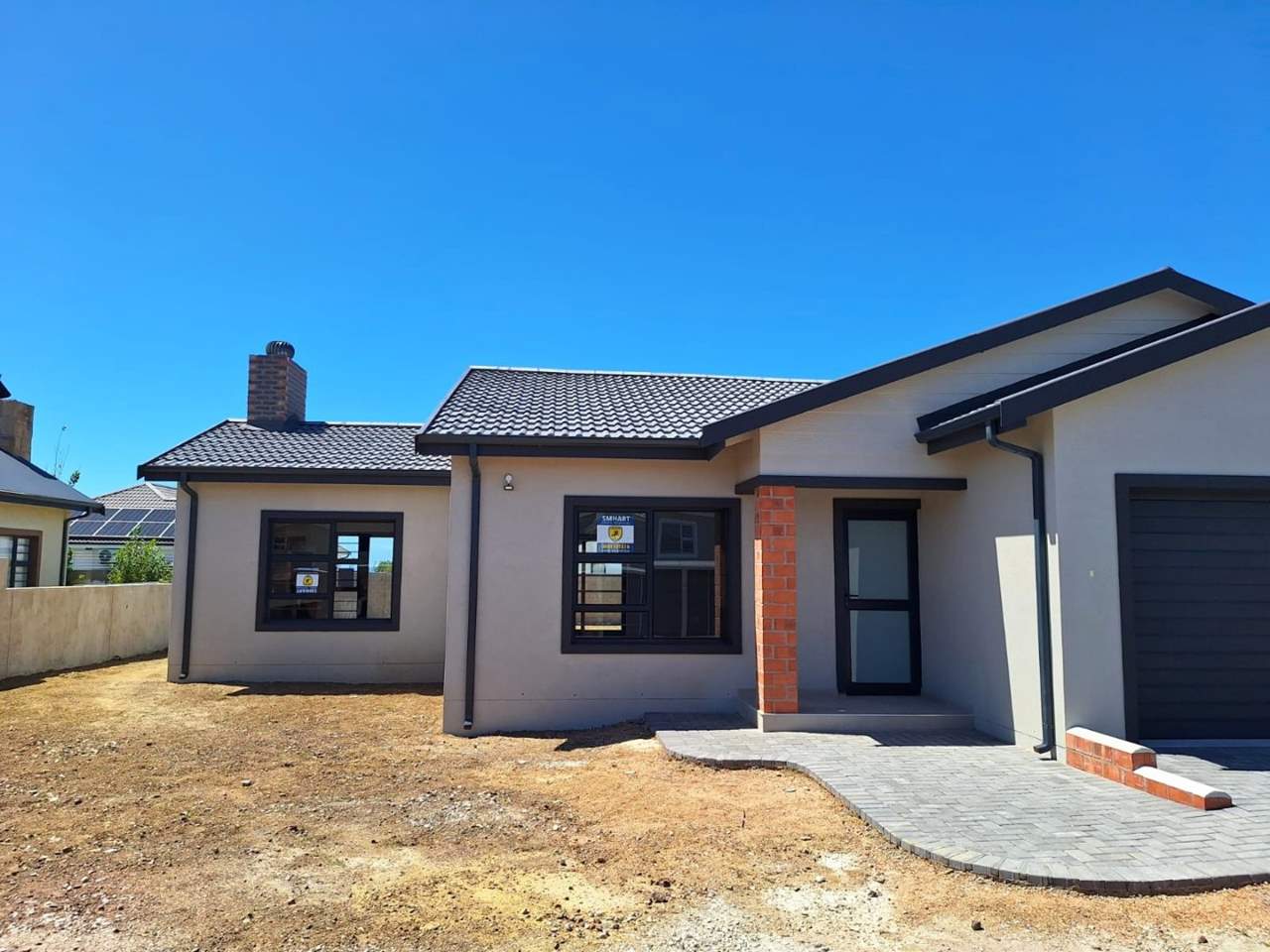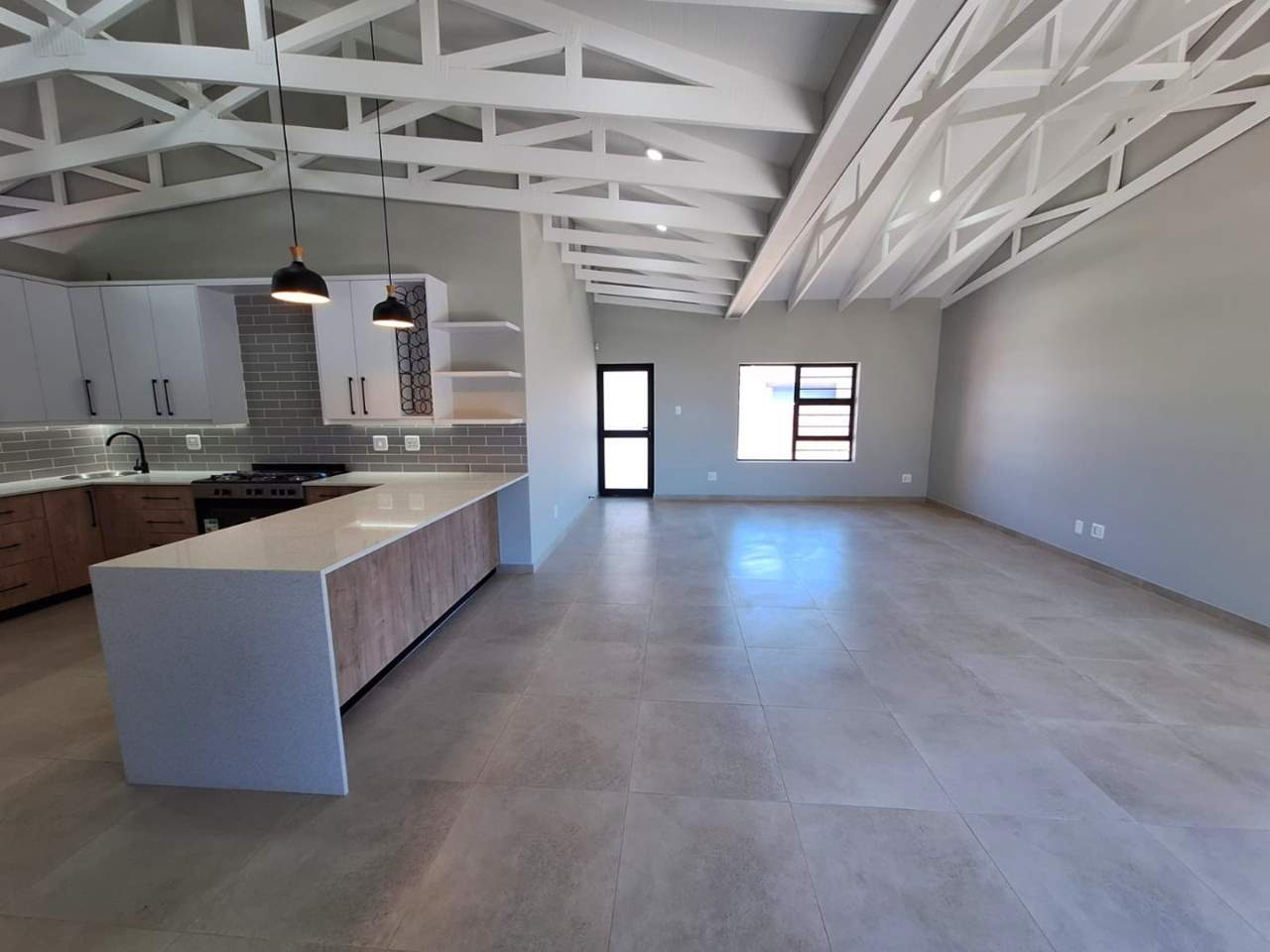 The home includes three well-sized bedrooms and two stylish bathrooms, designed with clean lines and modern appeal. Additional extras such as seamless aluminium gutters, an alarm system, and a platform prepared for a 5 000-litre water tank add to the value of this property. With a generous two-vehicle driveway, there is more than enough additional parking as well.