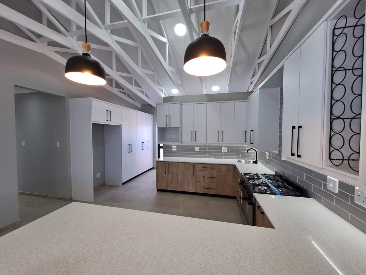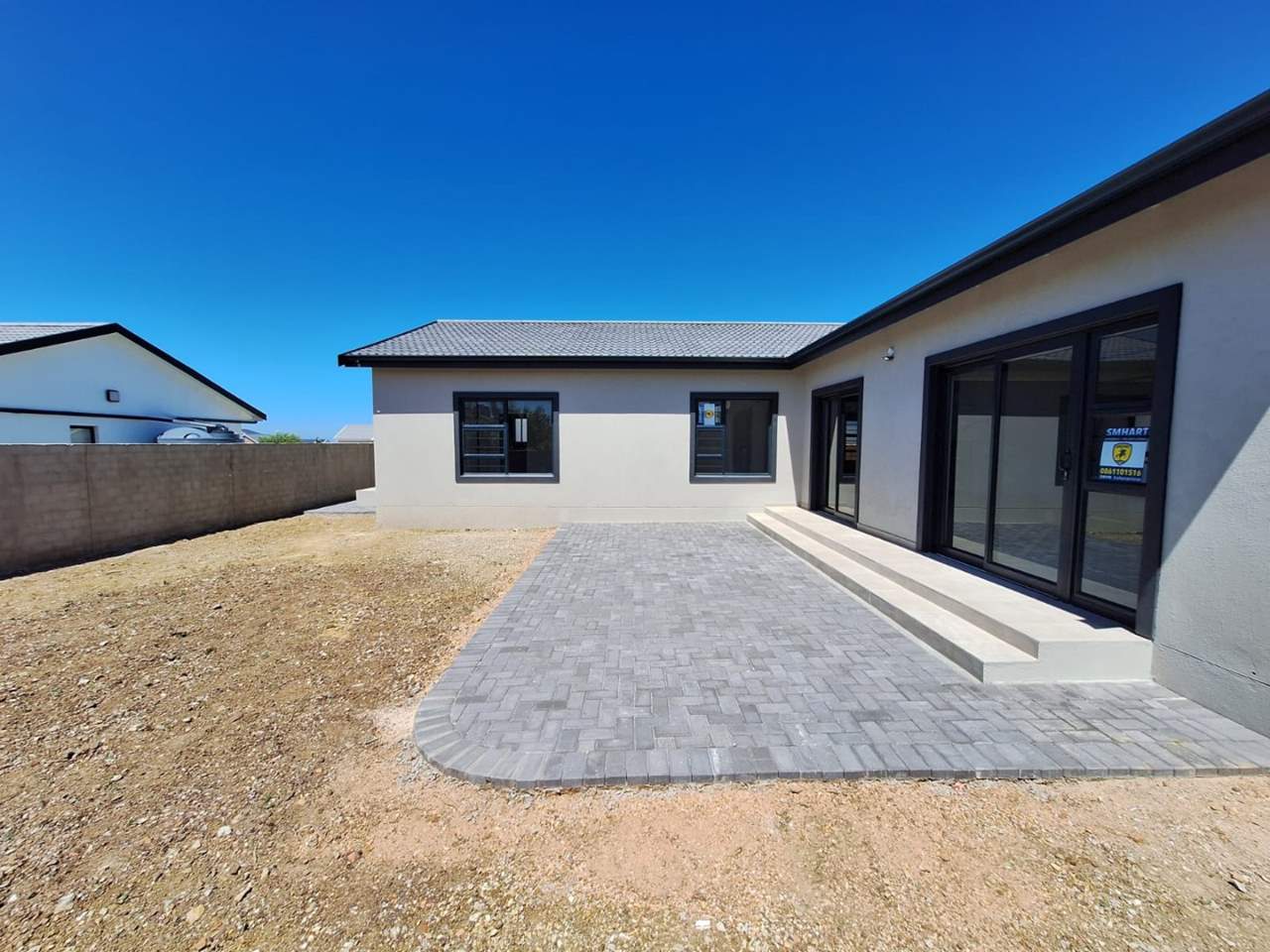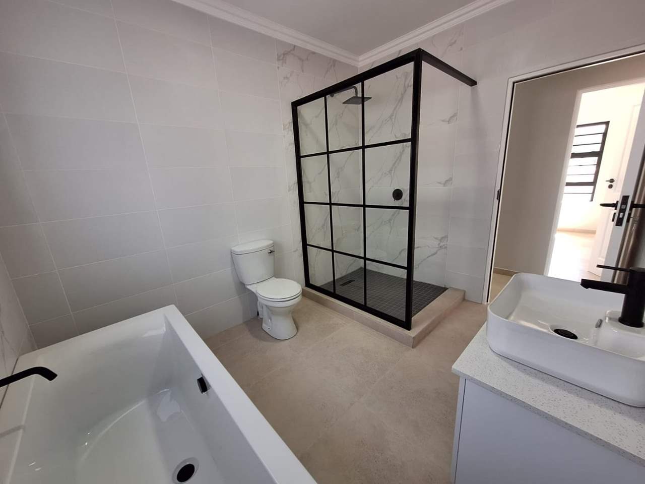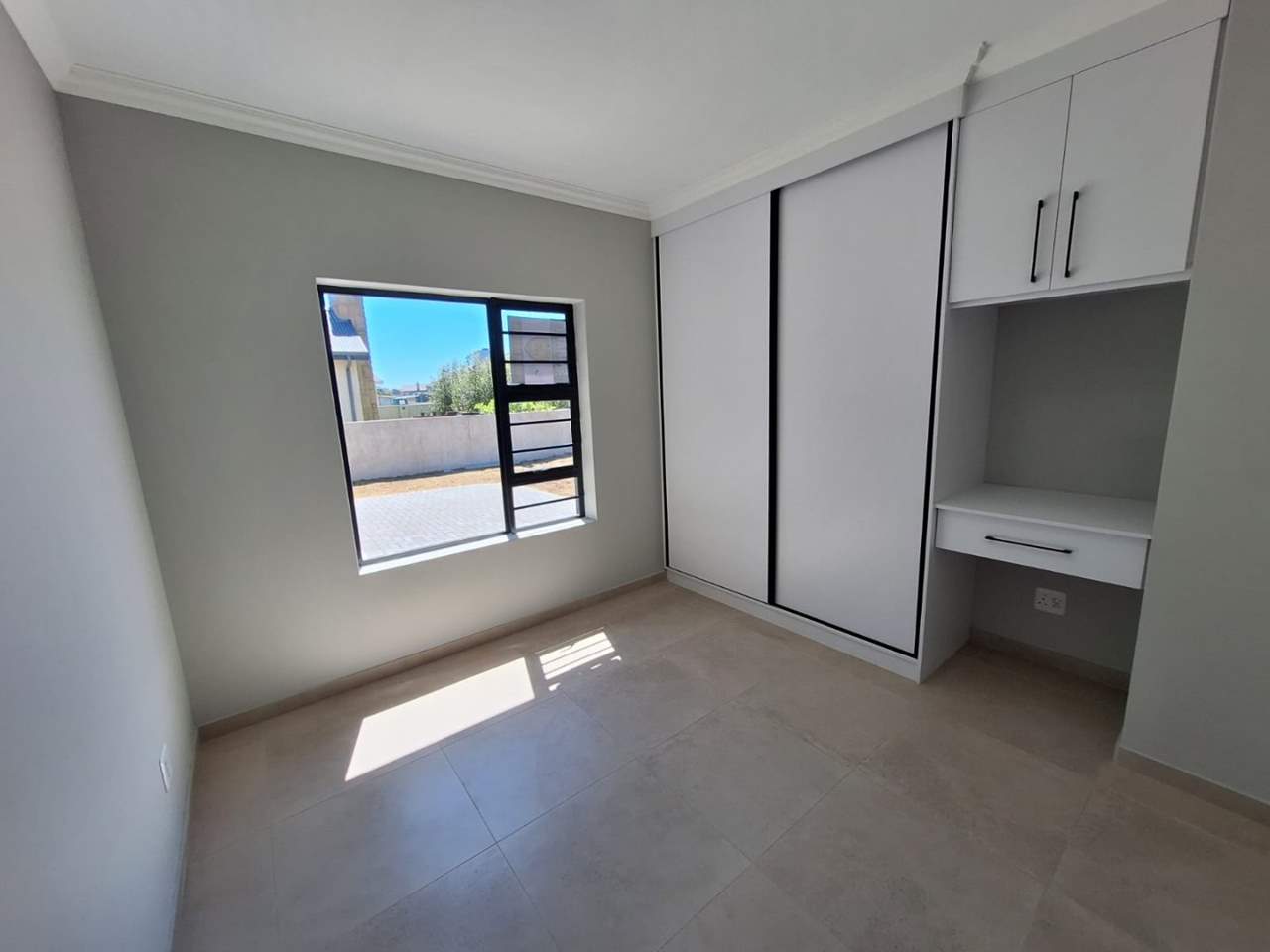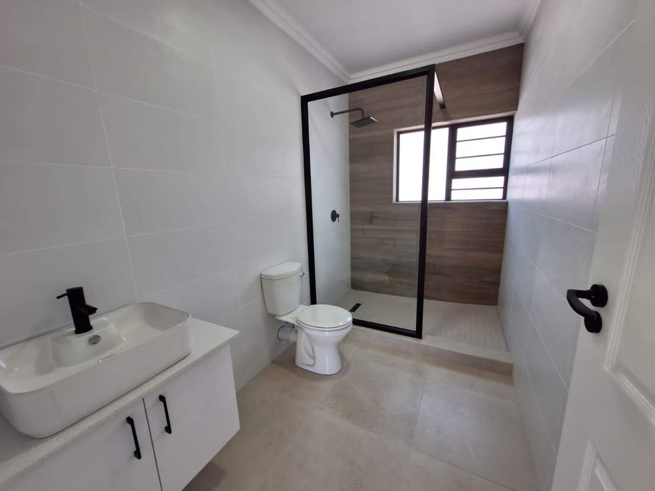 The home includes three well-sized bedrooms and two stylish bathrooms, designed with clean lines and modern appeal. Additional extras such as seamless aluminium gutters, an alarm system, and a platform prepared for a 5 000-litre water tank add to the value of this property. With a generous two-vehicle driveway, there is more than enough additional parking as well.