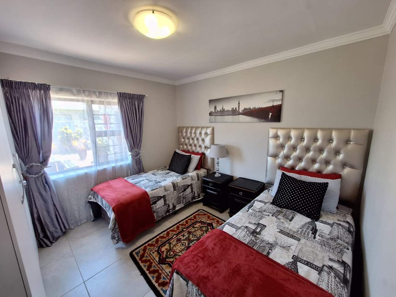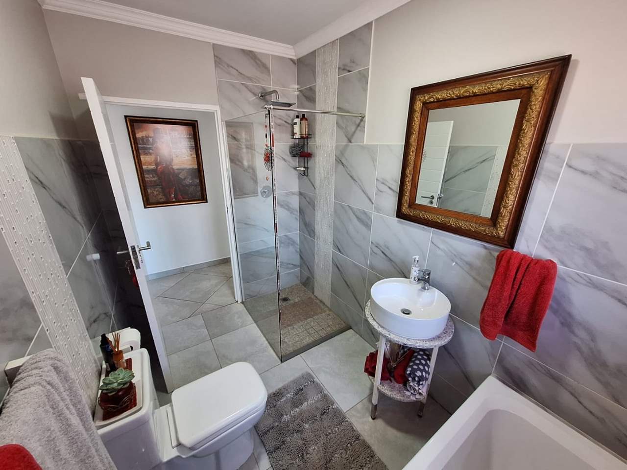 Inside, the home features three spacious bedrooms, all fitted with built-in cupboards. The main bedroom includes an en-suite bathroom, while the second bathroom is a full family bathroom, conveniently serving the remaining bedrooms.