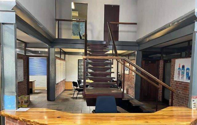 There offices are downstairs and upstairs, from upstairs there are a window that has an overview over the warehouse house.