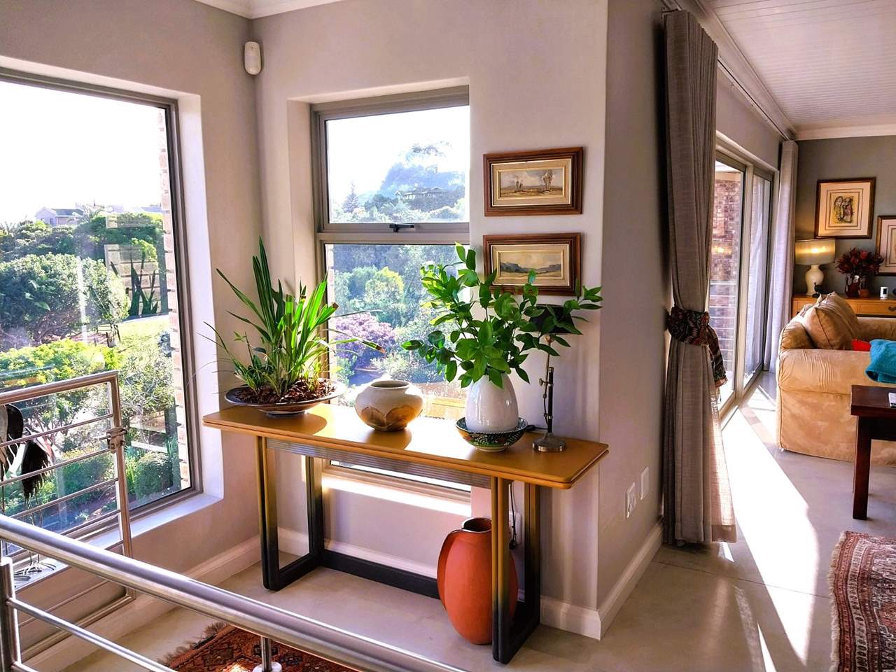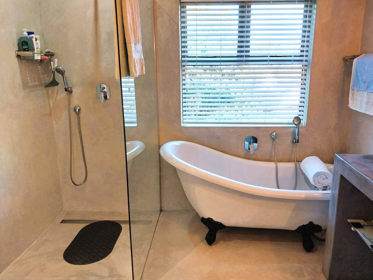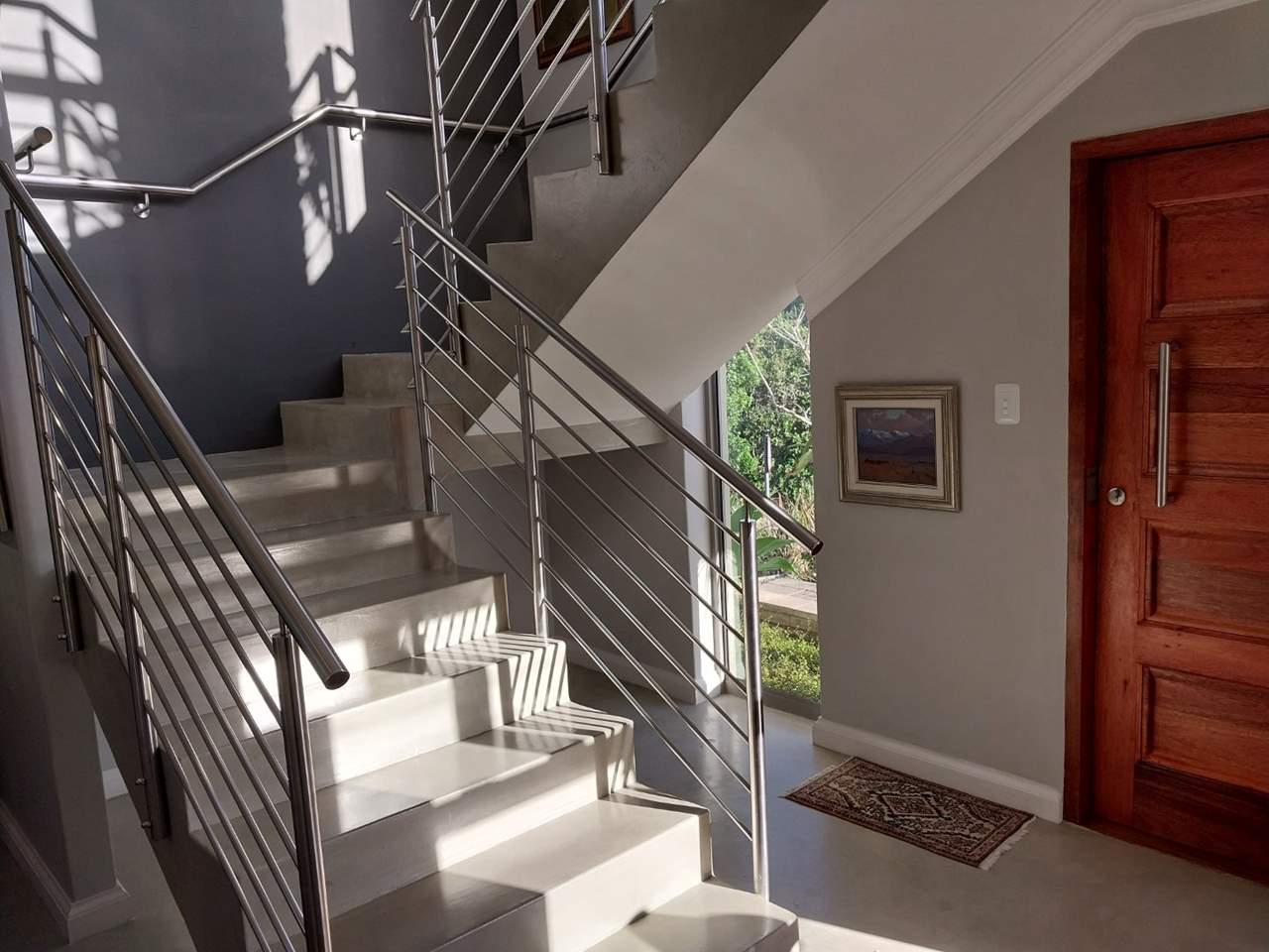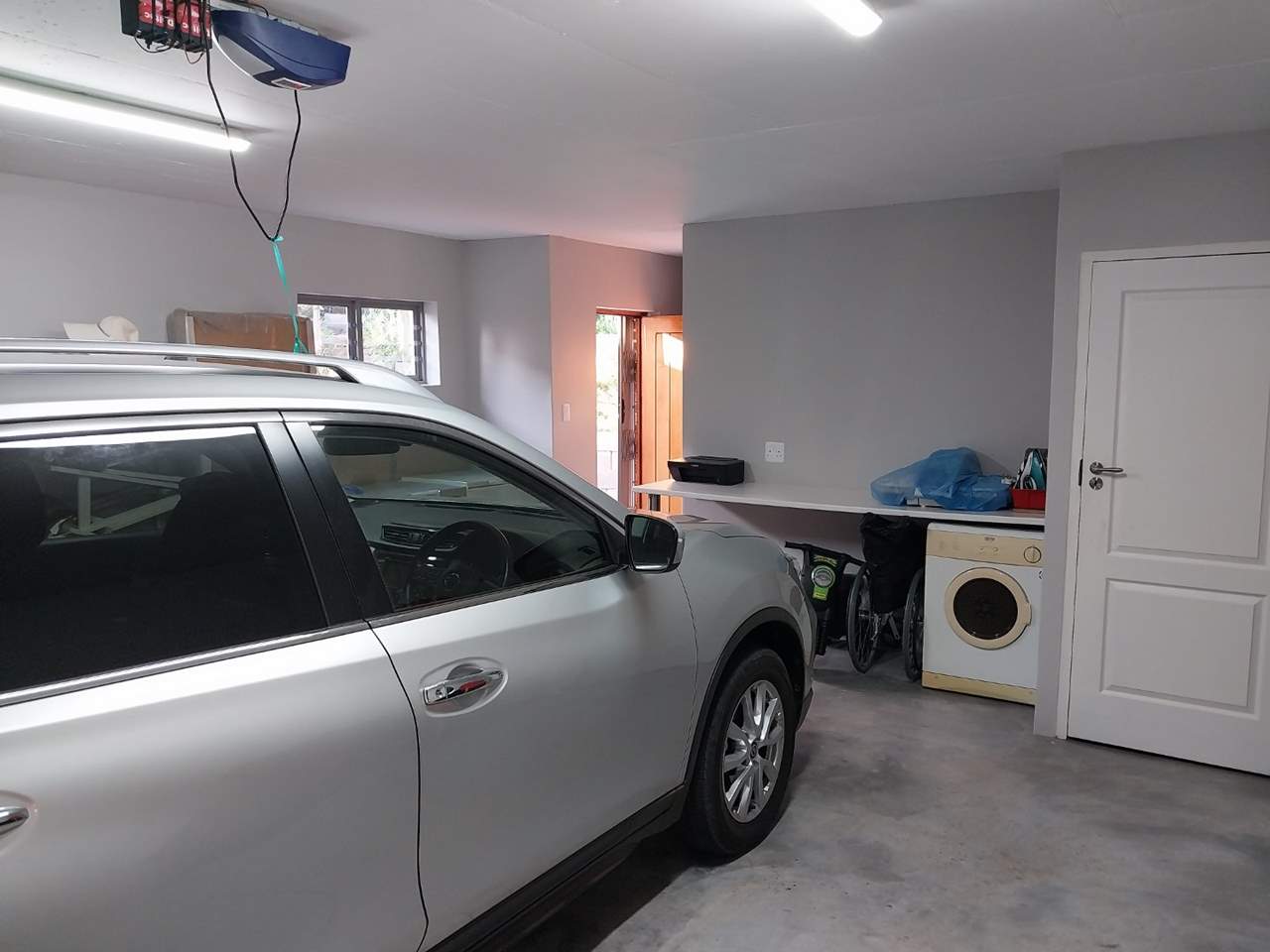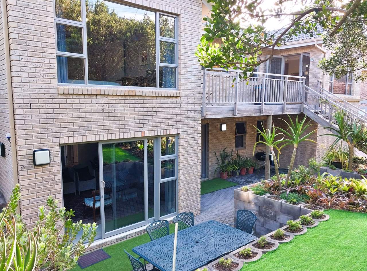 • Gourmet Kitchen & Entertaining Spaces: The upper level boasts a modern kitchen with ample stylish cabinetry, Caesarstone countertops, and an island equipped with a gas hob. The walk through scullery conveniently connects to an entertainment area, complete with a built-in stainless steel braai. Glass sliding doors open onto a timber deck, providing views of the landscaped, low-maintenance garden.