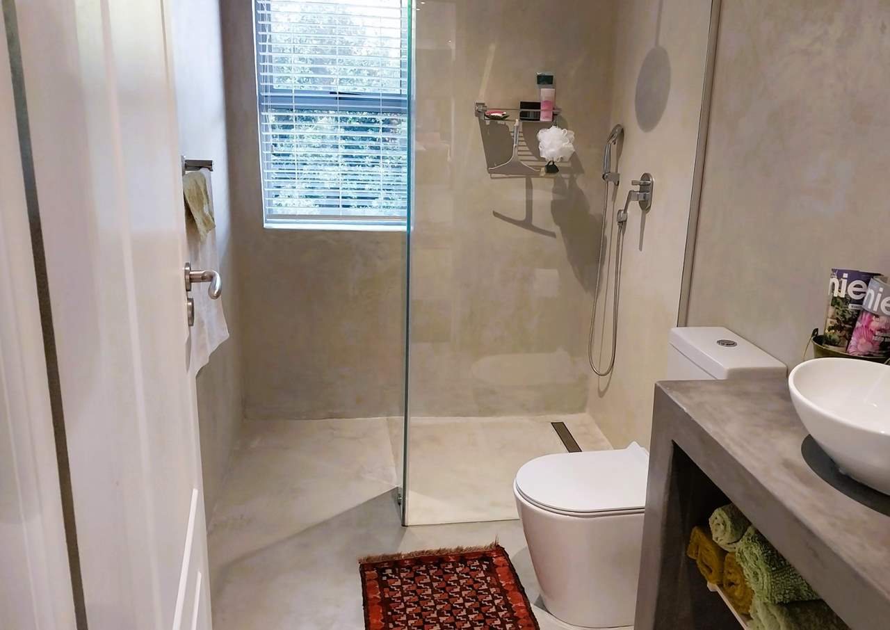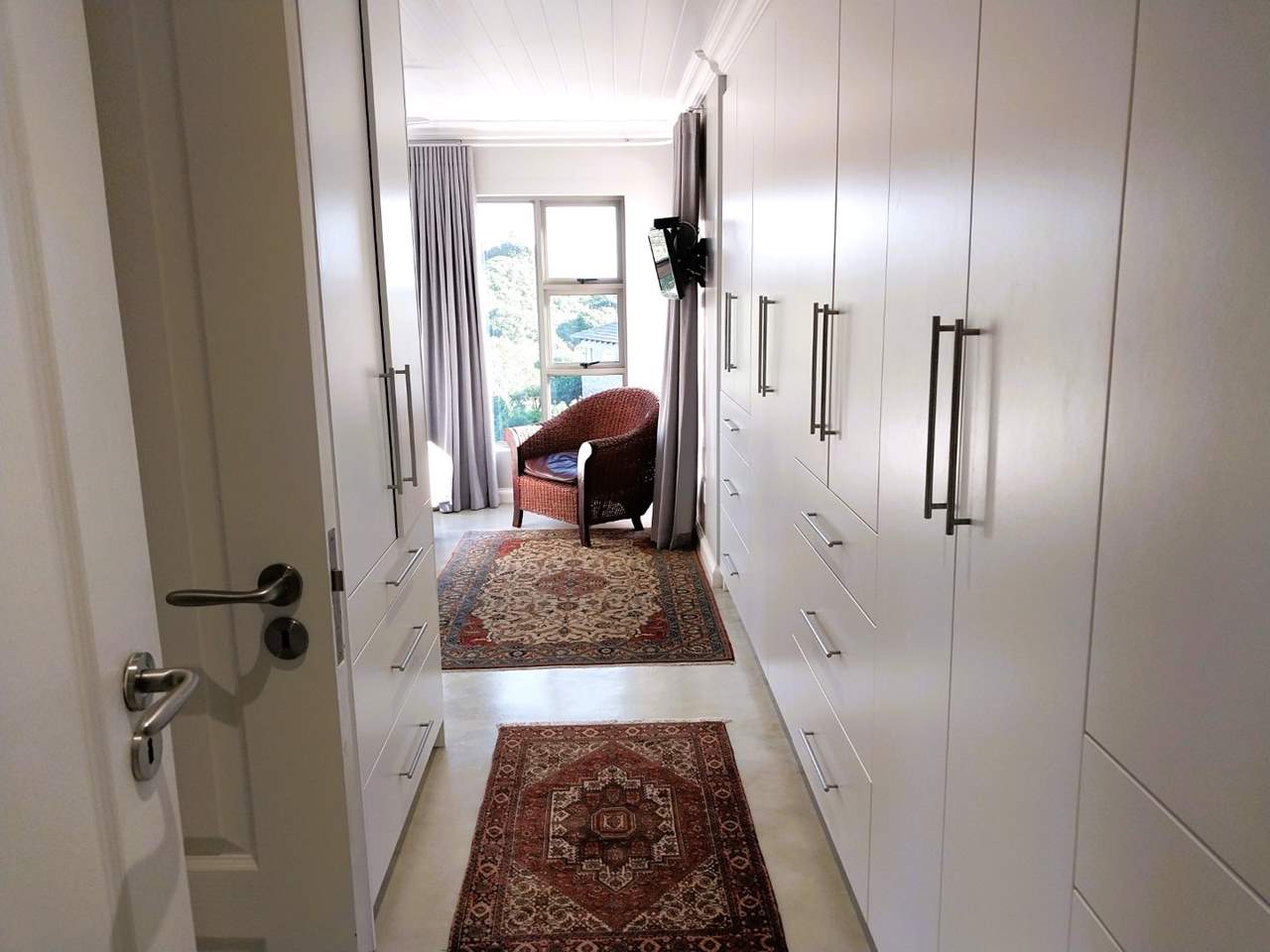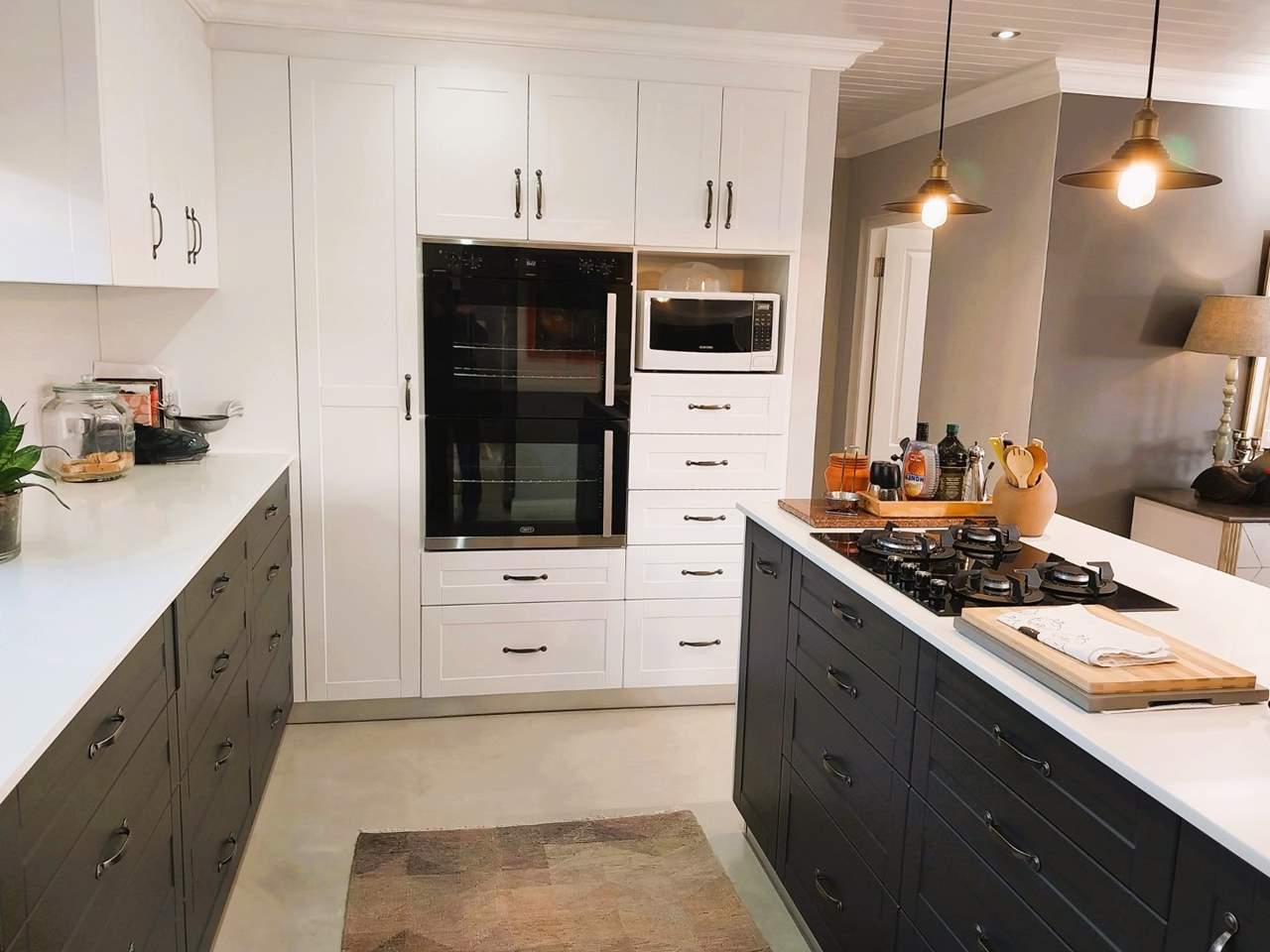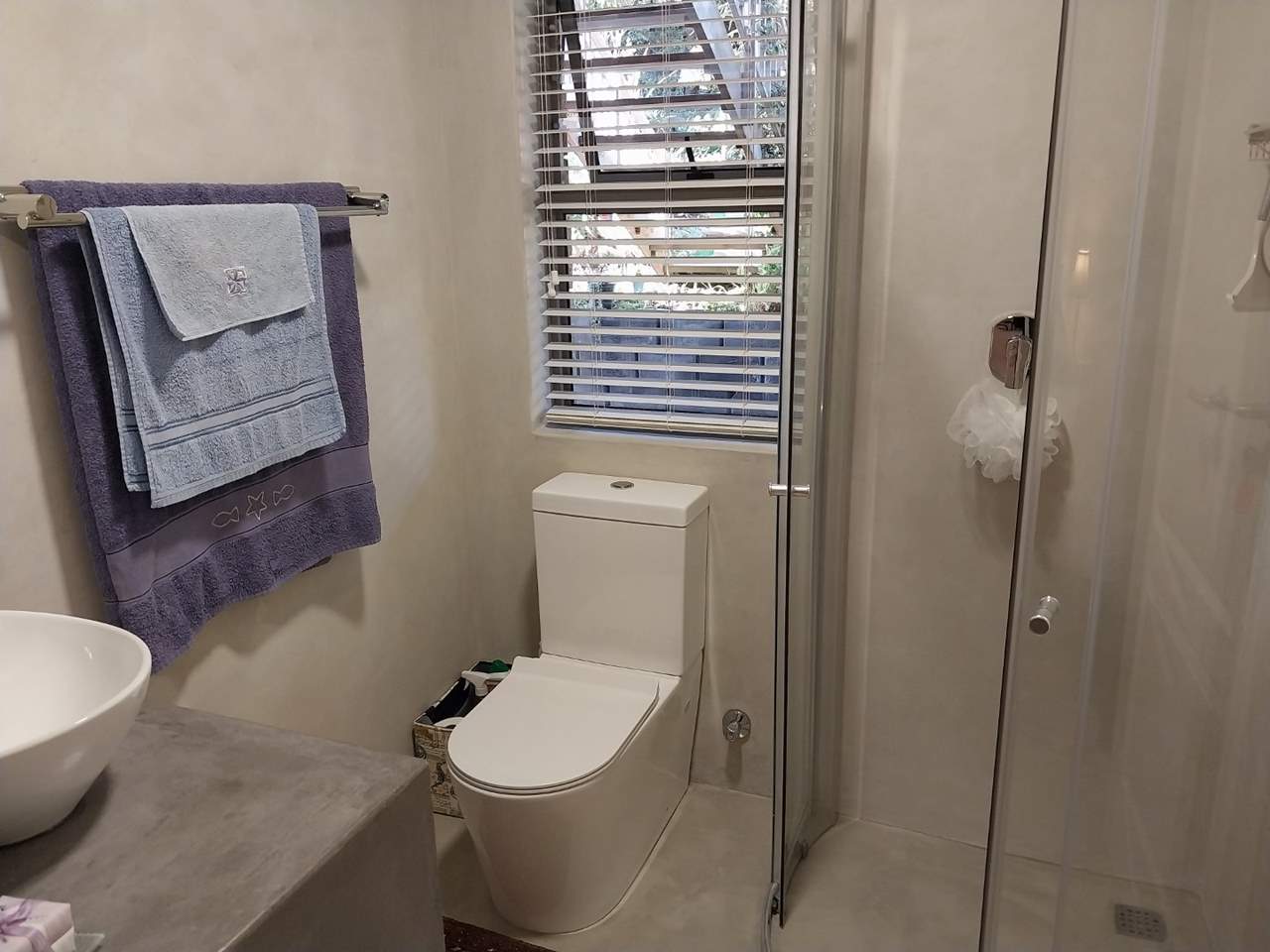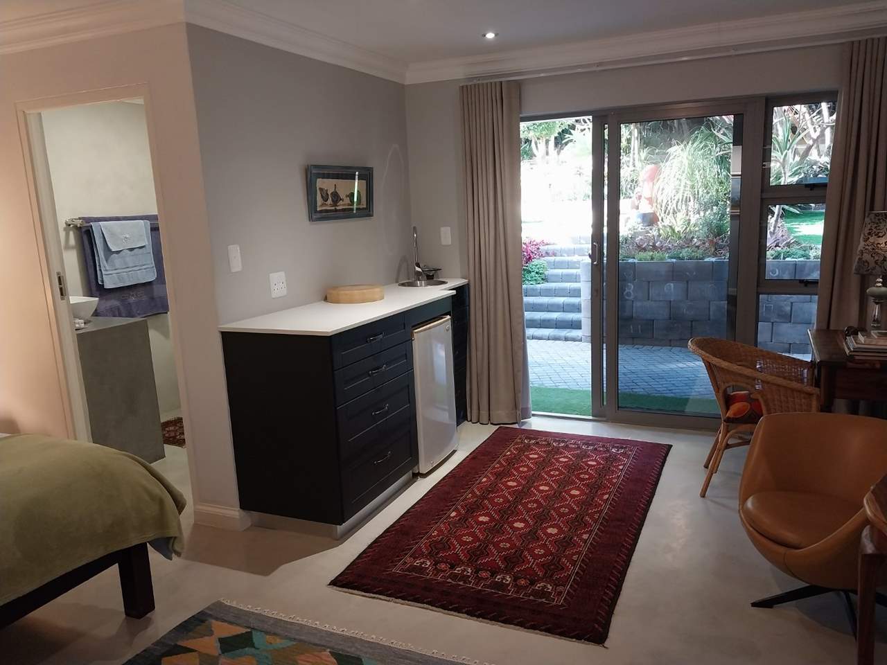 • Gourmet Kitchen & Entertaining Spaces: The upper level boasts a modern kitchen with ample stylish cabinetry, Caesarstone countertops, and an island equipped with a gas hob. The walk through scullery conveniently connects to an entertainment area, complete with a built-in stainless steel braai. Glass sliding doors open onto a timber deck, providing views of the landscaped, low-maintenance garden.