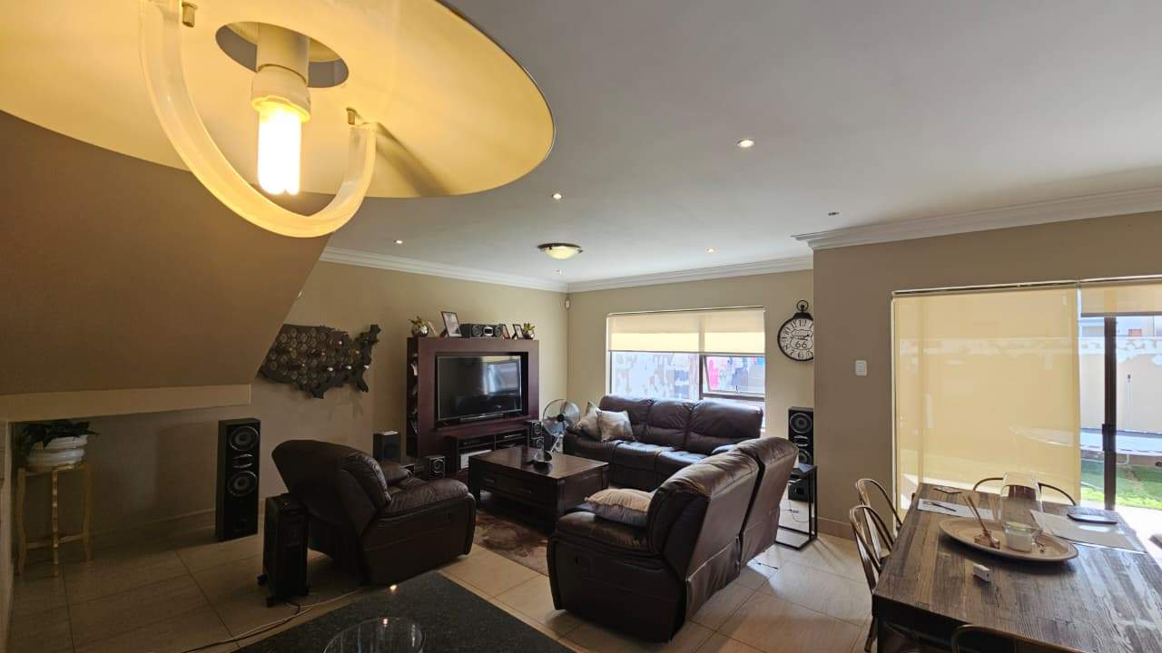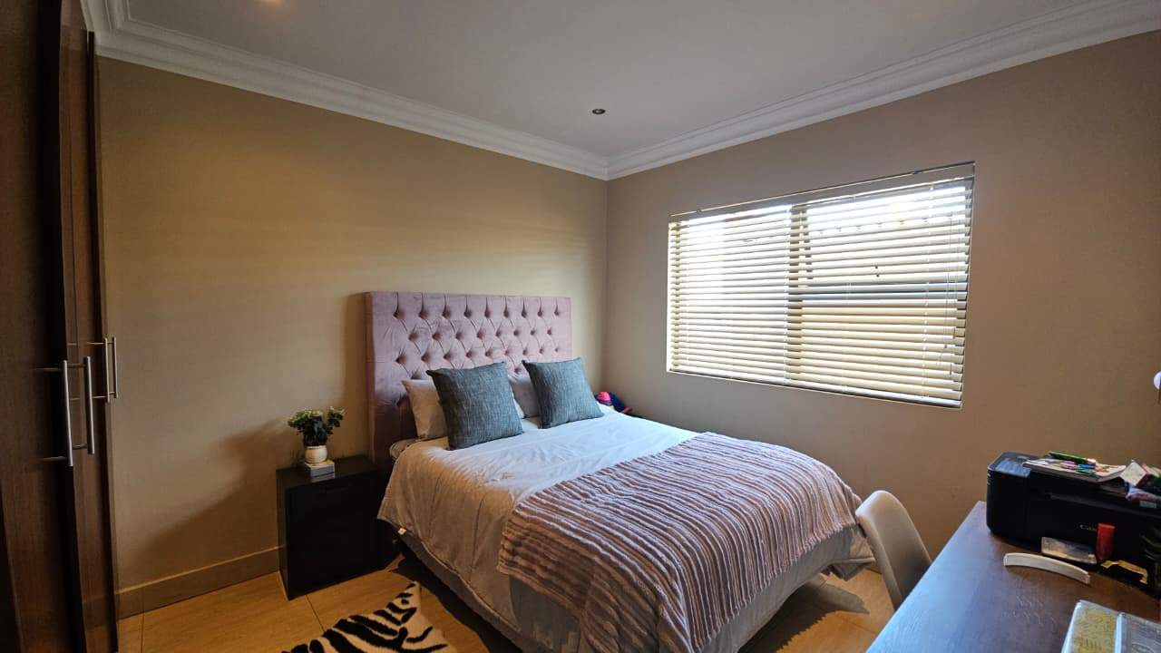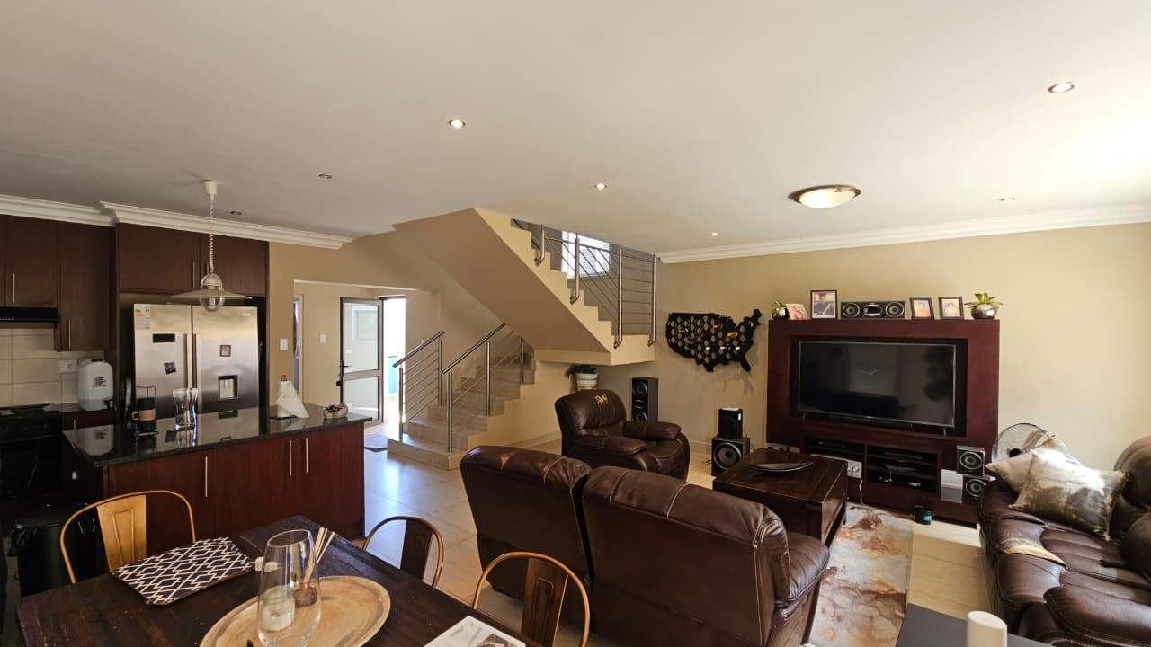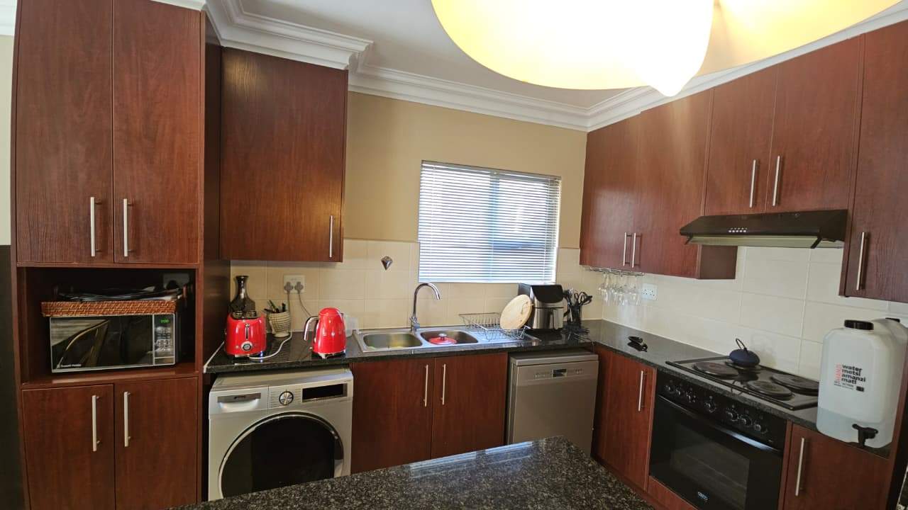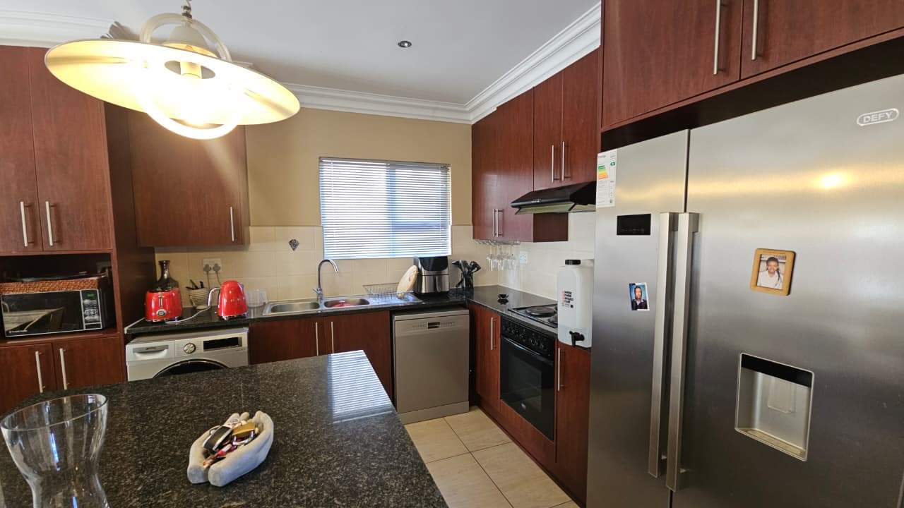 This expansive unit boasts three spacious bedrooms, each featuring beautiful built-in cupboards and elegant tiled flooring. The master bedroom enjoys the luxury of an en-suite bathroom, while a second well-appointed bathroom serves the remaining bedrooms. The sleek, modern kitchen is equipped with top-of-the-line fittings, granite countertops, and ample storage. The heart of the home is the spacious, open-plan lounge and dining area, perfect for entertaining. With a double garage and visitor parking, this property offers convenience and practicality. As one of the larger units in the complex, it provides a sense of grandeur and sophistication.