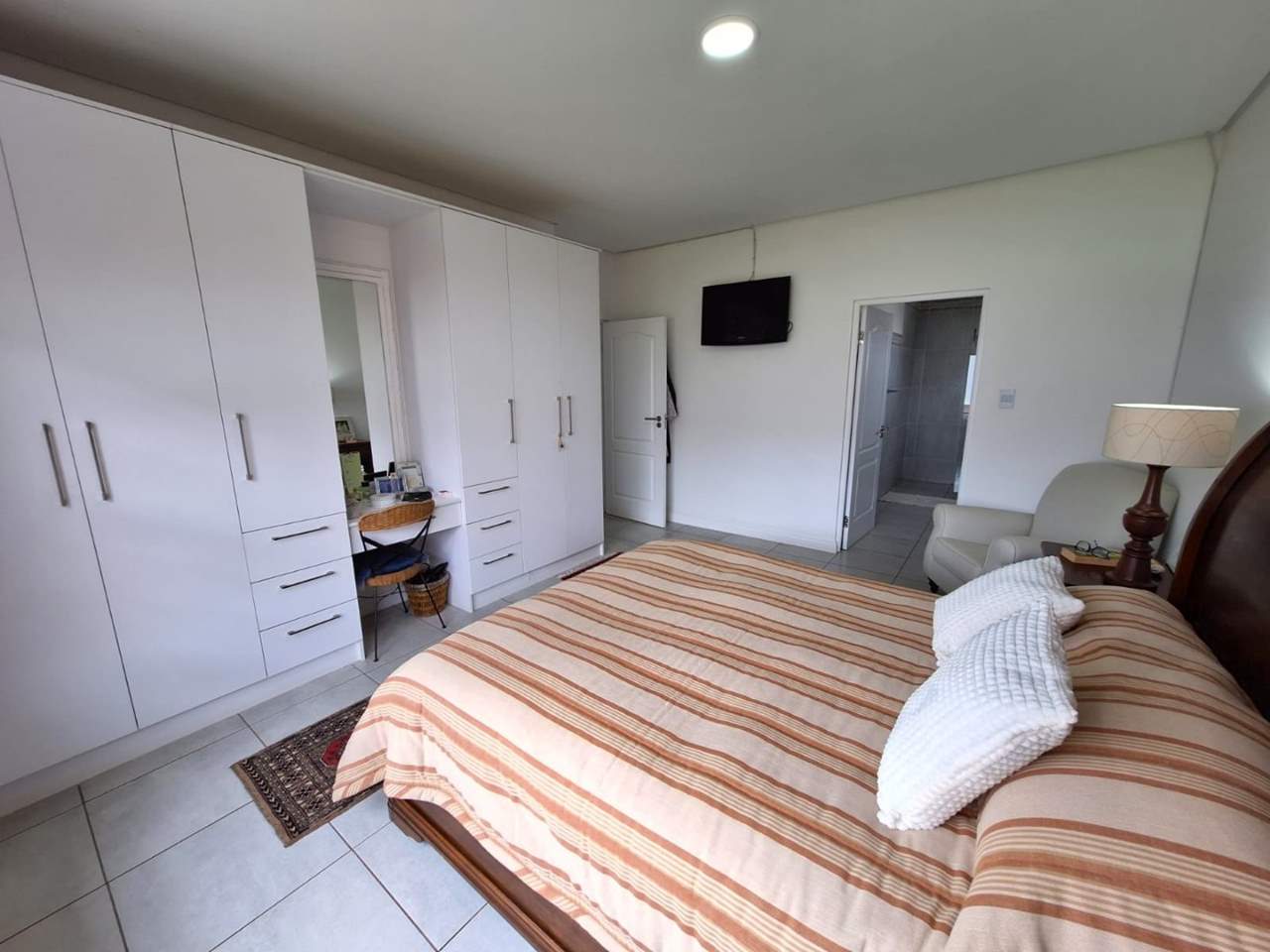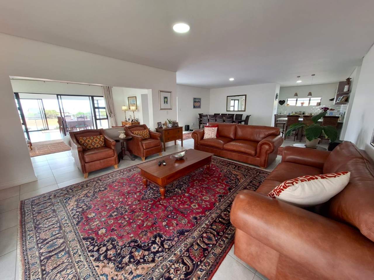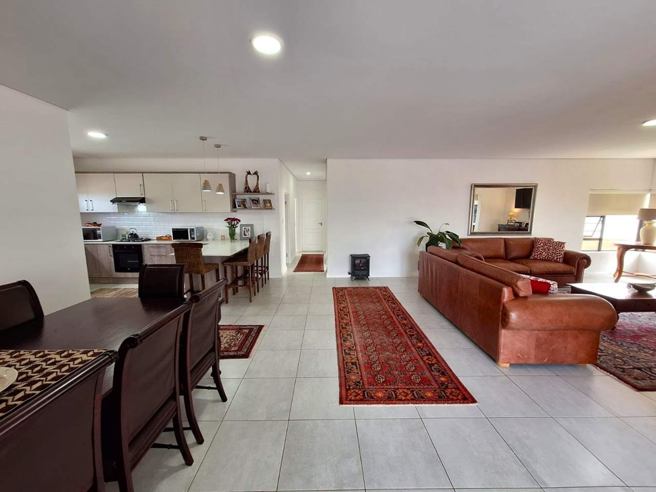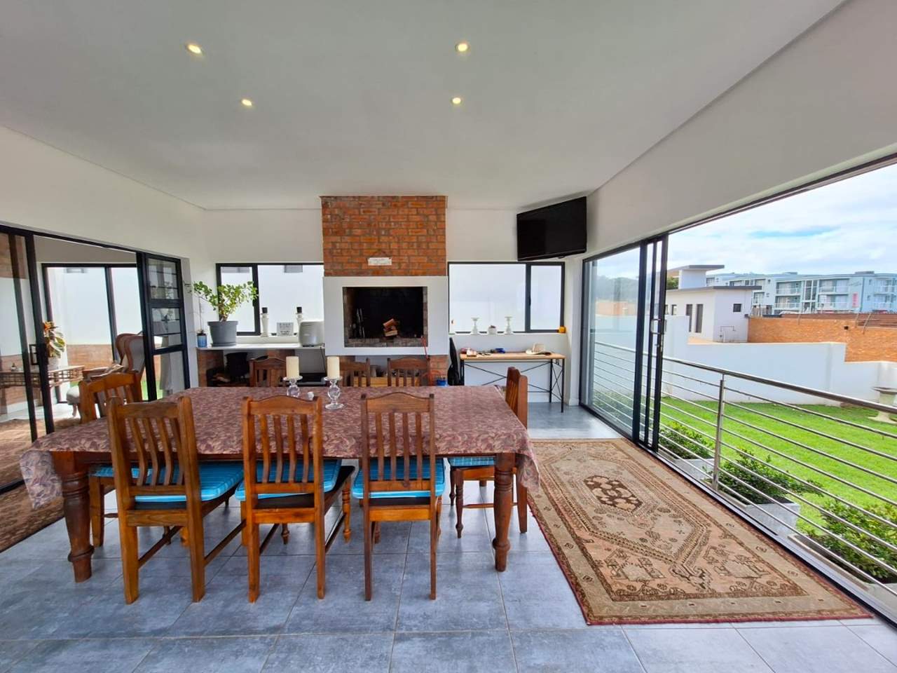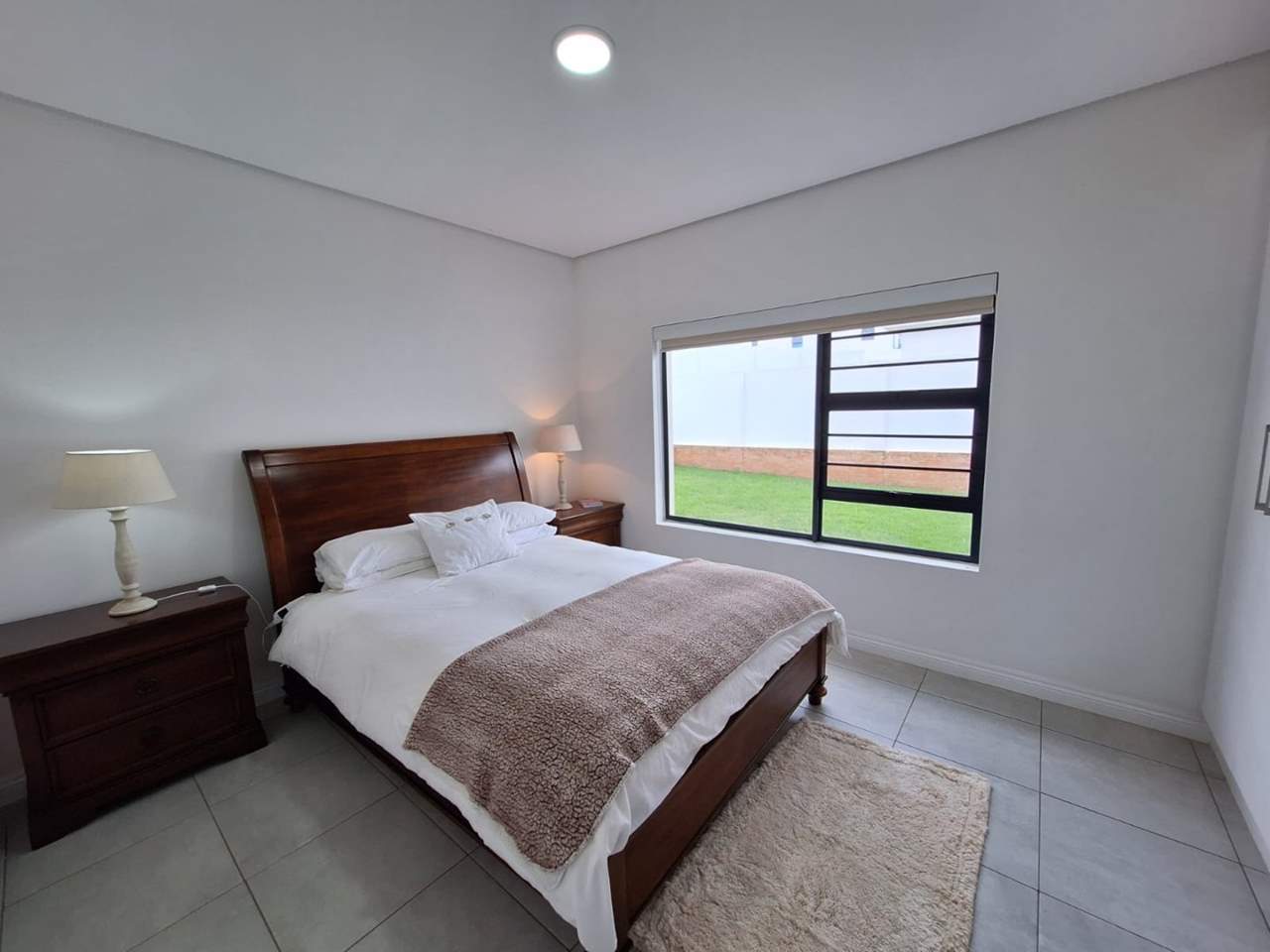 The sleek, ultra-modern kitchen, complete with a separate scullery linking to the garage, flows seamlessly into the open-plan lounge, dining area and an additional sitting room, an inviting space perfect for both relaxation and entertaining. A spacious covered and enclosed patio with a built-in braai ensures year-round enjoyment.