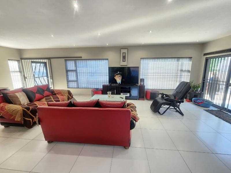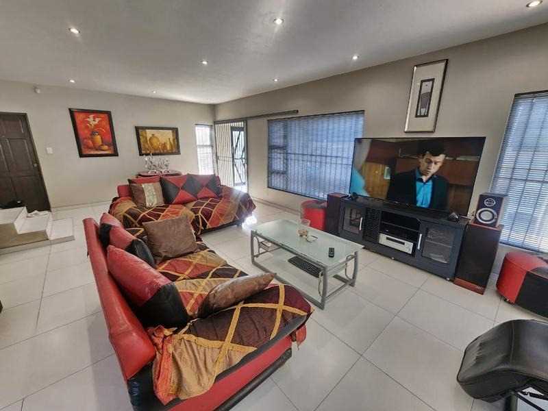 Living spaces are generous and inviting, with a lounge, dining area, and TV room seamlessly connecting to a modern kitchen fitted with a breakfast nook and separate scullery.
