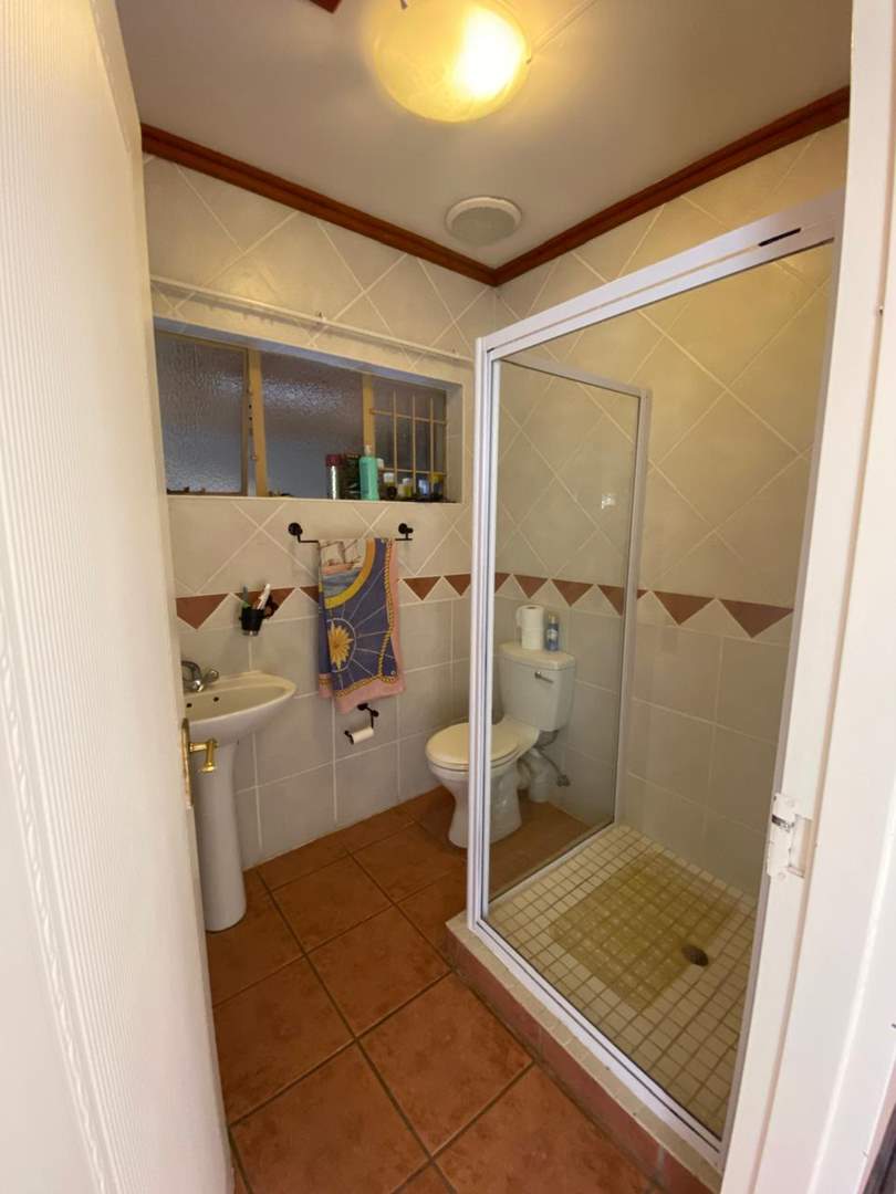 Second Bathroom: Fully tiled with a shower, basin, and toilet, designed for convenience.