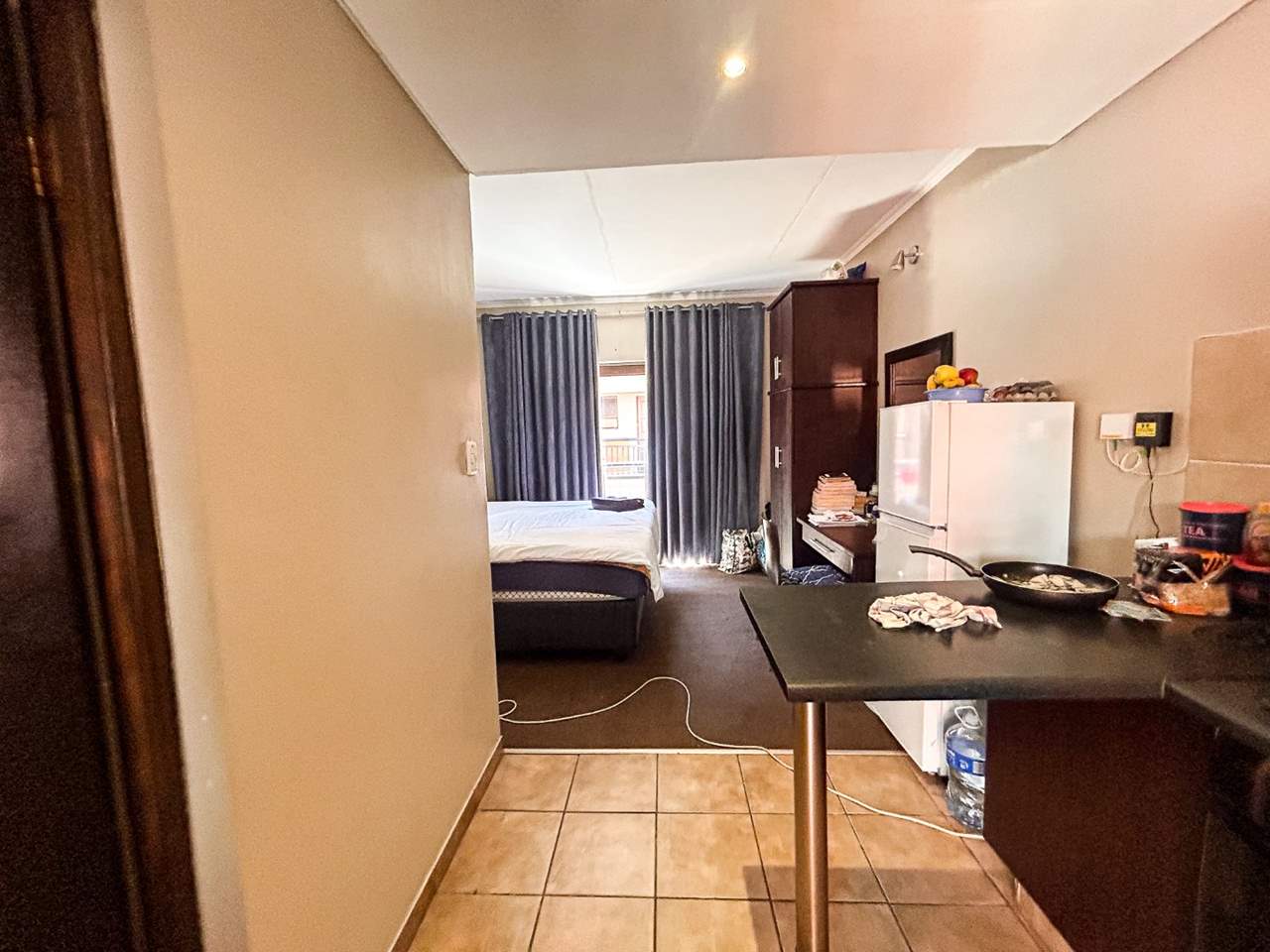 The bedroom includes built-in cupboards and a dedicated desk area, providing an excellent environment for work or study. Enjoy the warm Free State summers on your private balcony, and refresh in the tiled bathroom equipped with a shower.