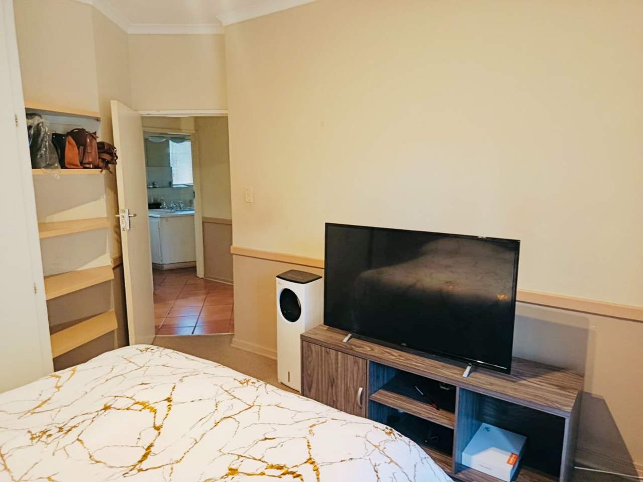 The unit features two generously sized bedrooms with built-in cupboards, providing both comfort and functionality. The neat bathroom is thoughtfully designed to cater to everyday needs.