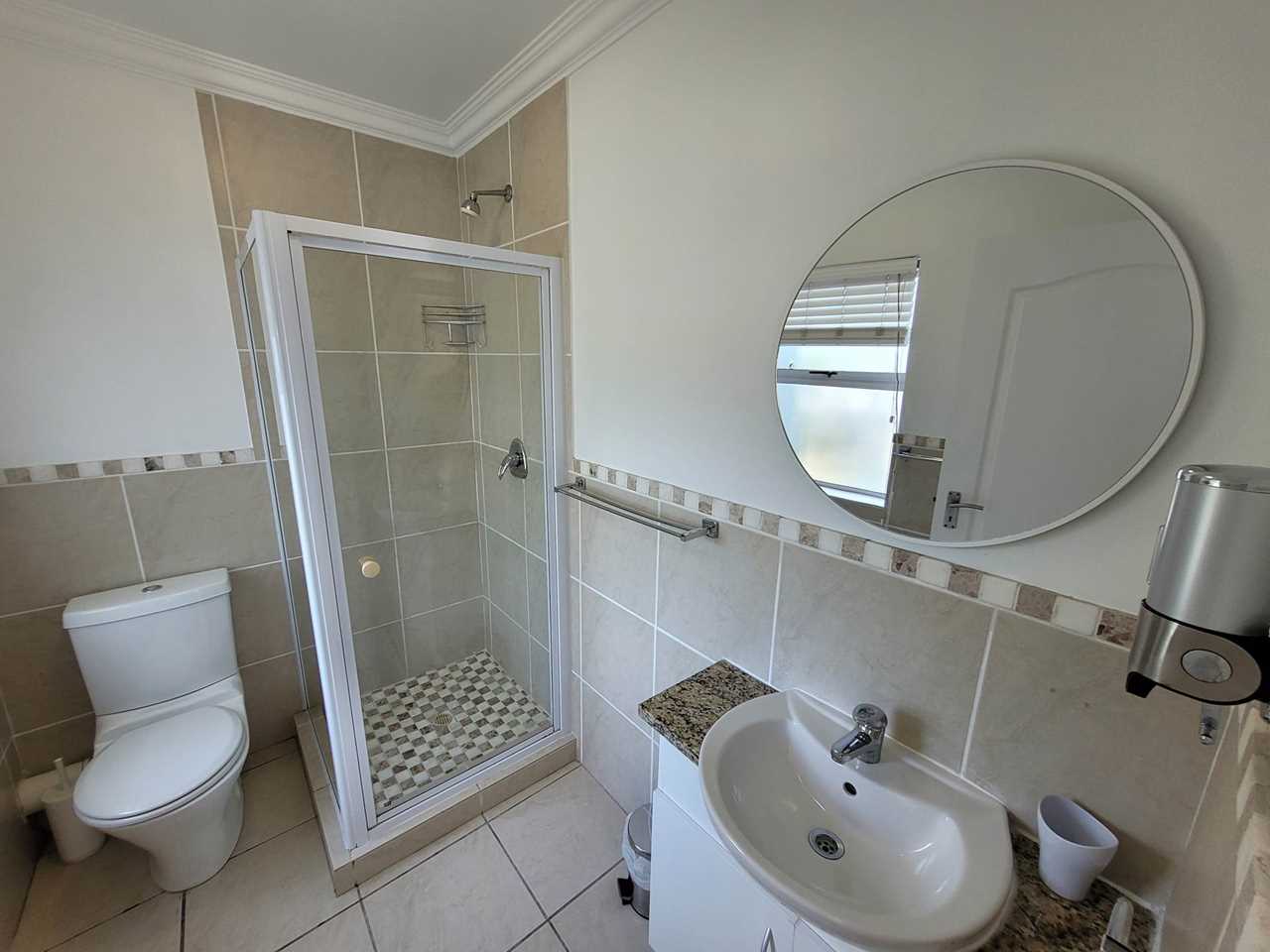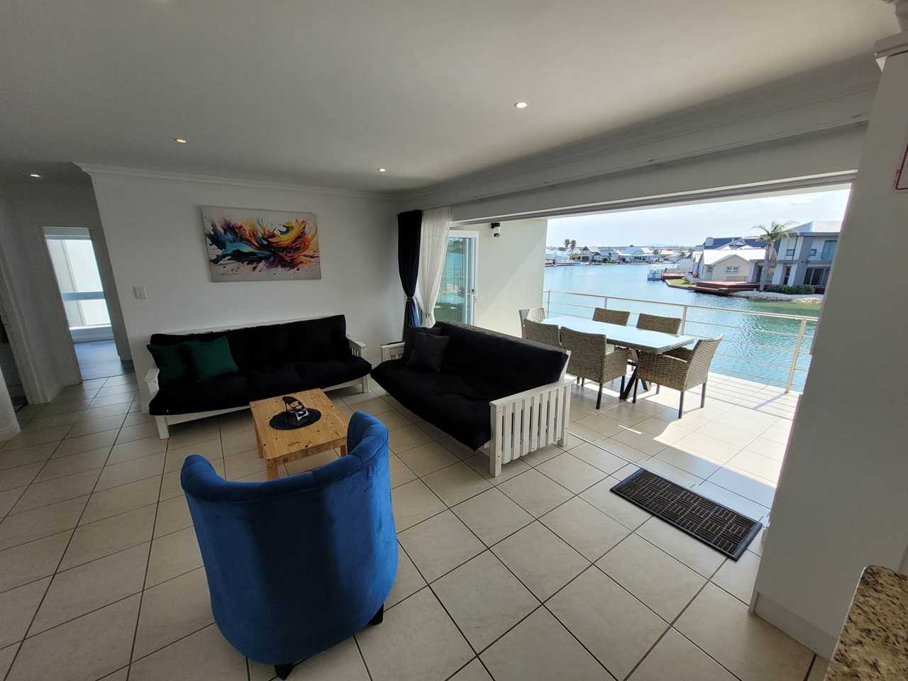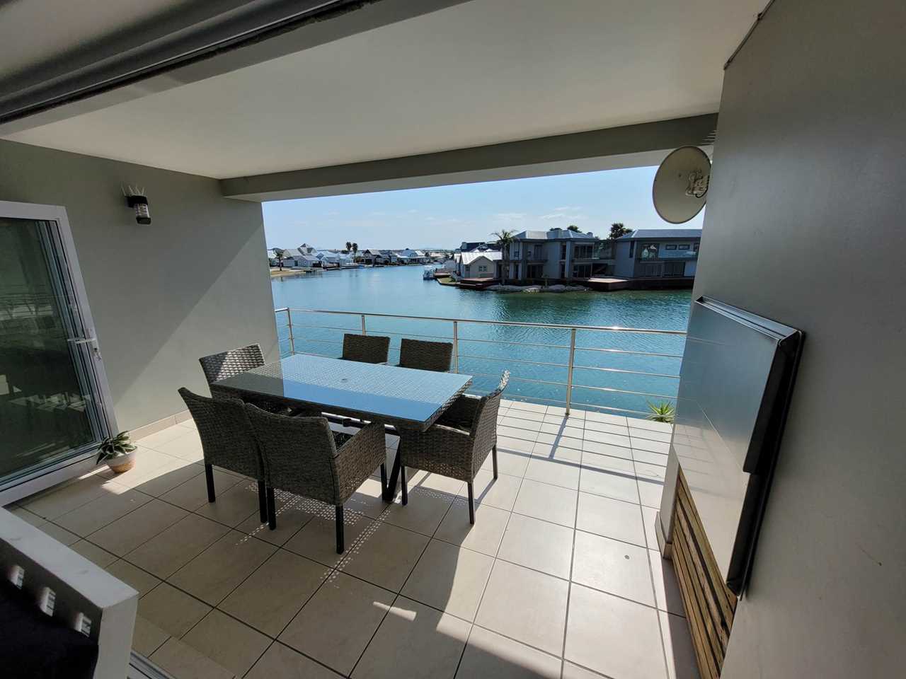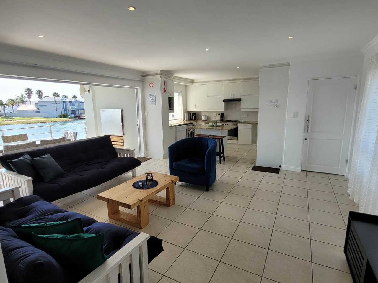 The apartment features a generous open-plan living area that flows effortlessly onto a large, covered patio via stackable sliding doors – ideal for entertaining or relaxing while soaking up the tranquil surroundings. The patio includes a brand-new built-in stainless steel braai for ultimate outdoor living.