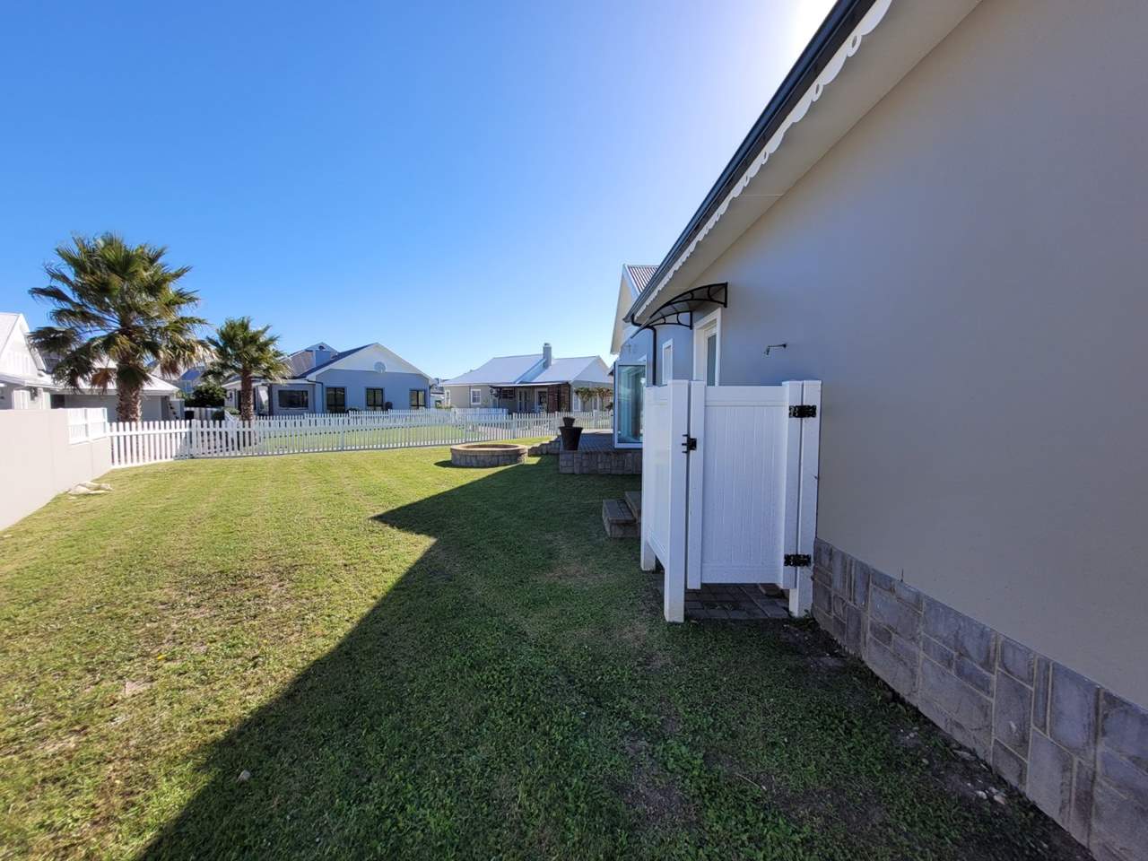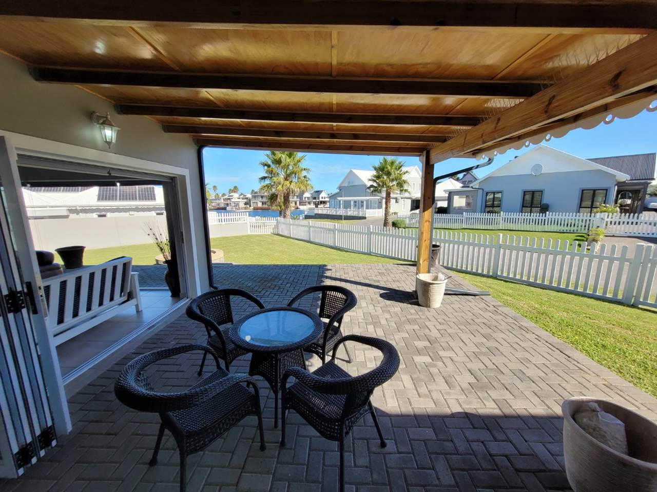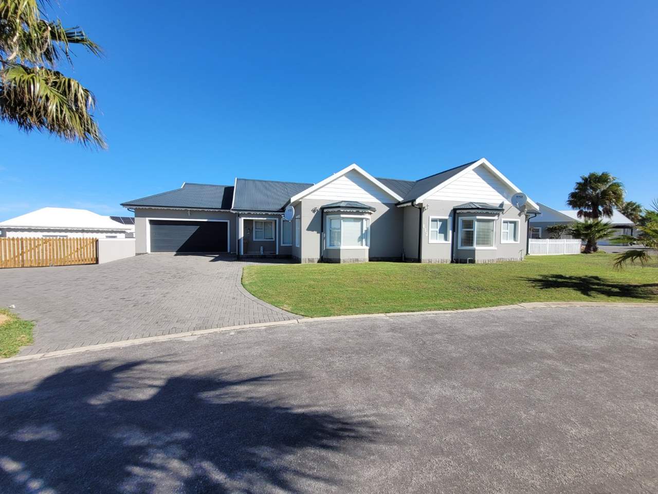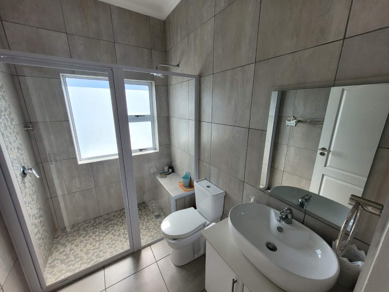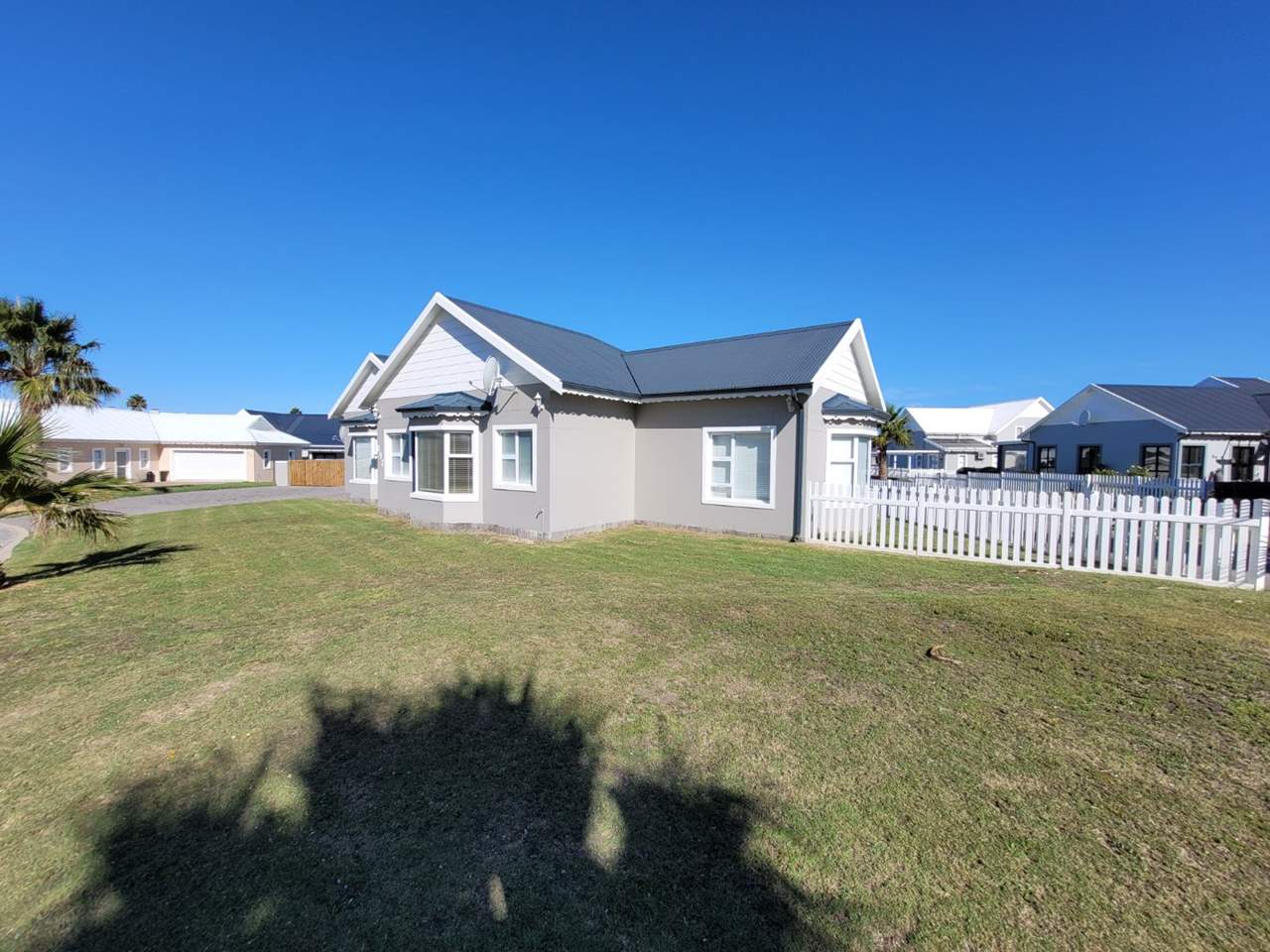 Inside, the home boasts a spacious open-plan design with high, exposed truss ceilings that enhance the sense of light and space. The open living area includes a TV lounge, dining room, and an entertainment area with a built-in stainless steel braai and two sets of stacking doors — seamlessly connecting indoor and outdoor living spaces.