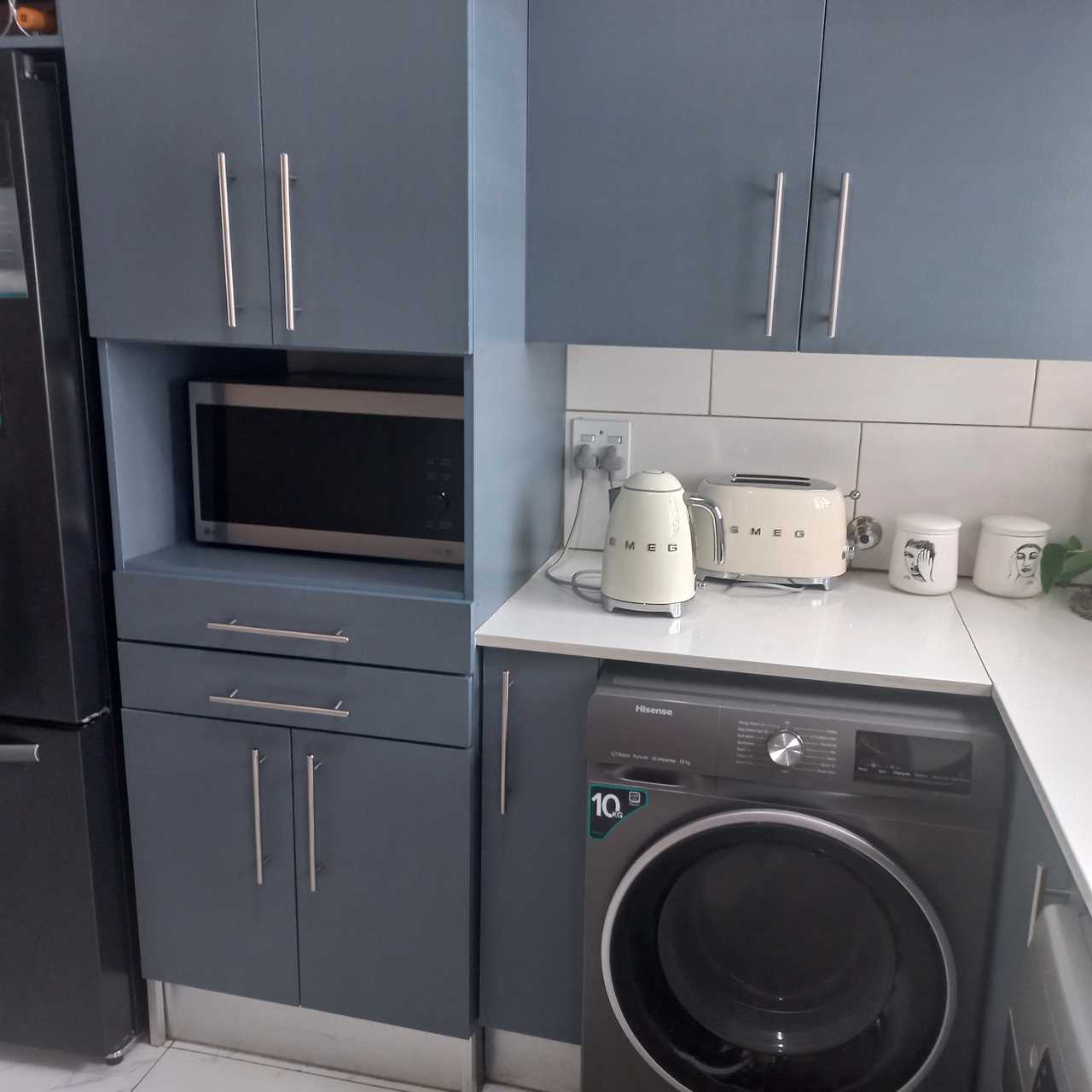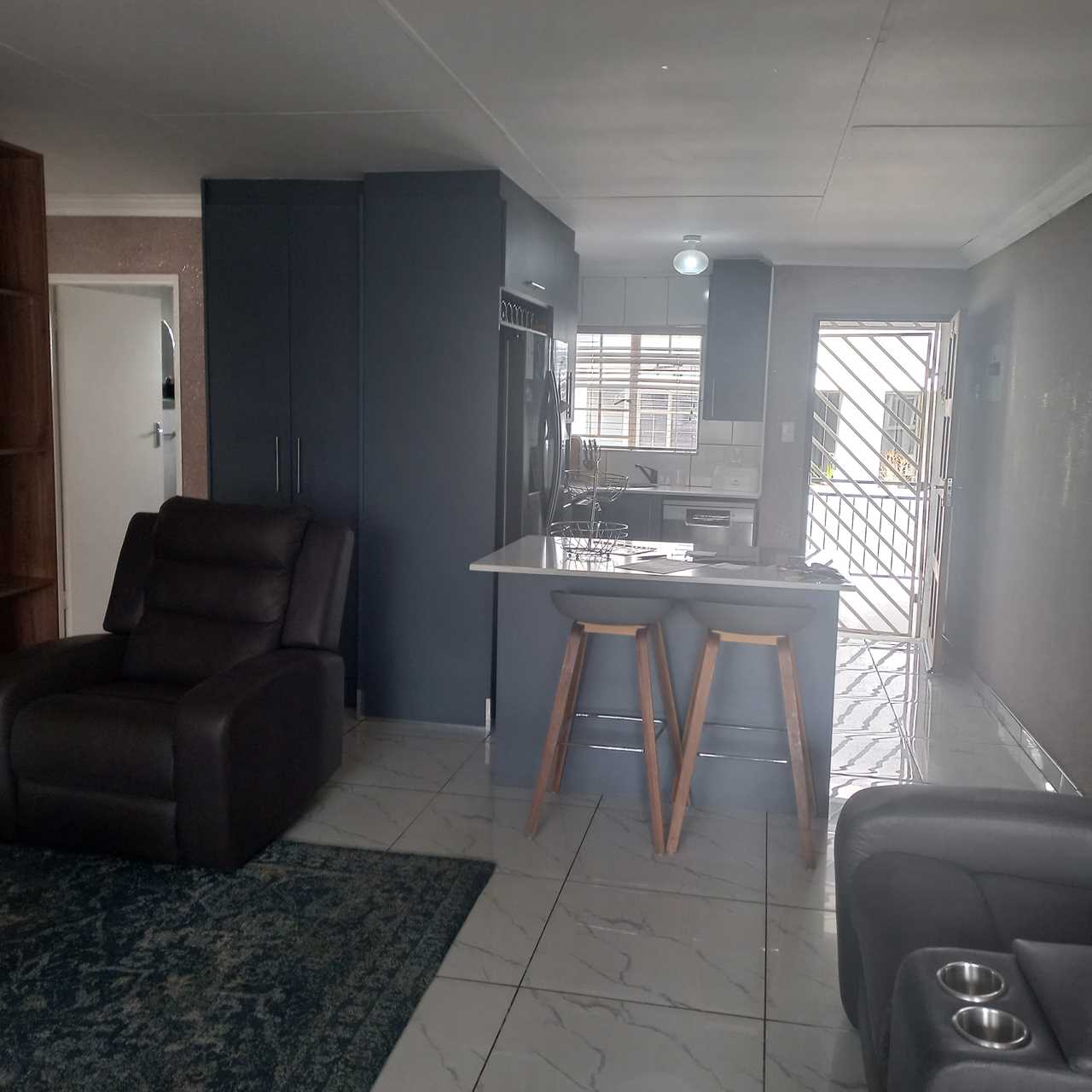 Laundry area, Lounge- Kitchen dining area. 2 big bedrooms, Cupboards built in.Municipal Bill R 246