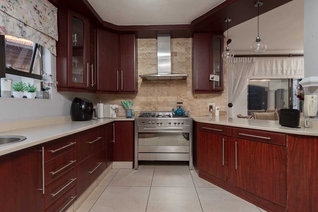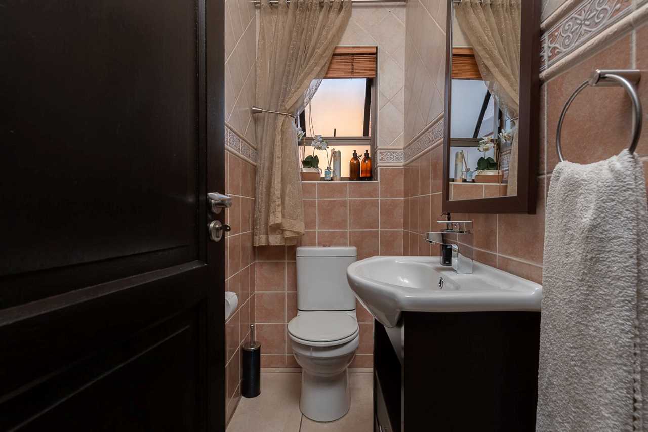 Massive indoor entertainment room complete with built-in braai, bar counter tops/display, full kitchenette with stove, oven, extractor fan and prep bowl. Own modern guest toilet — ideal for hosting in style. Could even be converted to extra living space/flatlet if needed.