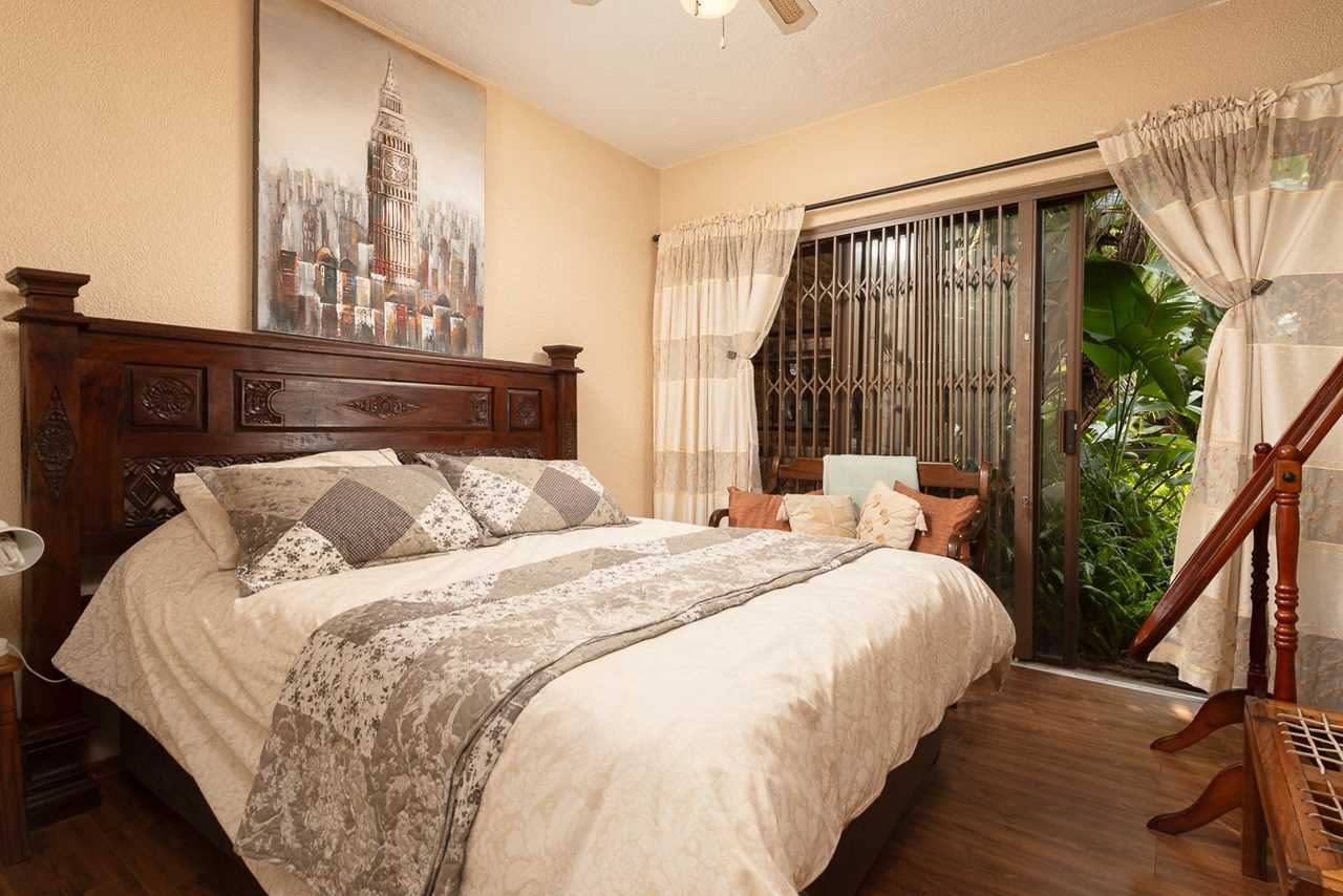 Main Bedroom – Spacious suite with walk-in closet, air-conditioning, ceiling fan and sliding doors opening to the garden.
