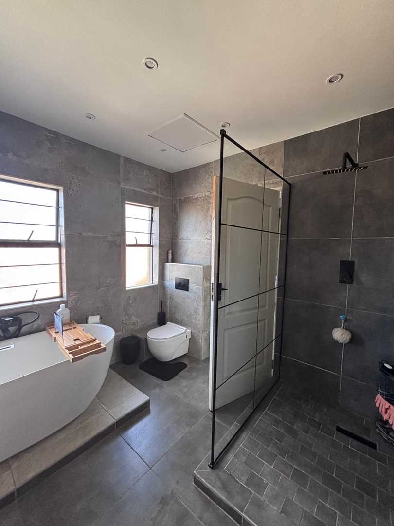 This contemporary home offers three well-sized bedrooms with built-in cupboards, including a main en-suite with air conditioning for added comfort. Two sleek bathrooms, along with a convenient guest toilet downstairs, cater perfectly to both family living and entertaining.