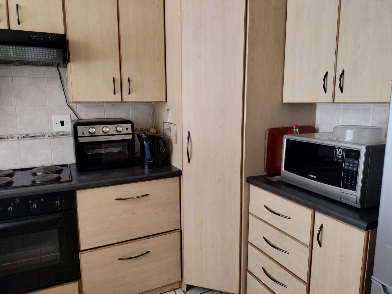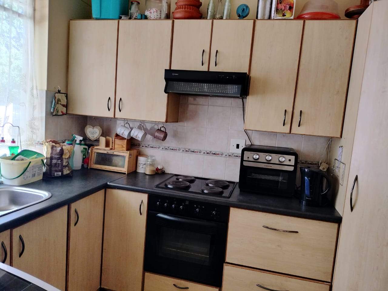 It offers: A neat and modern kitchen with built-in cupboards and fitted with tiles.