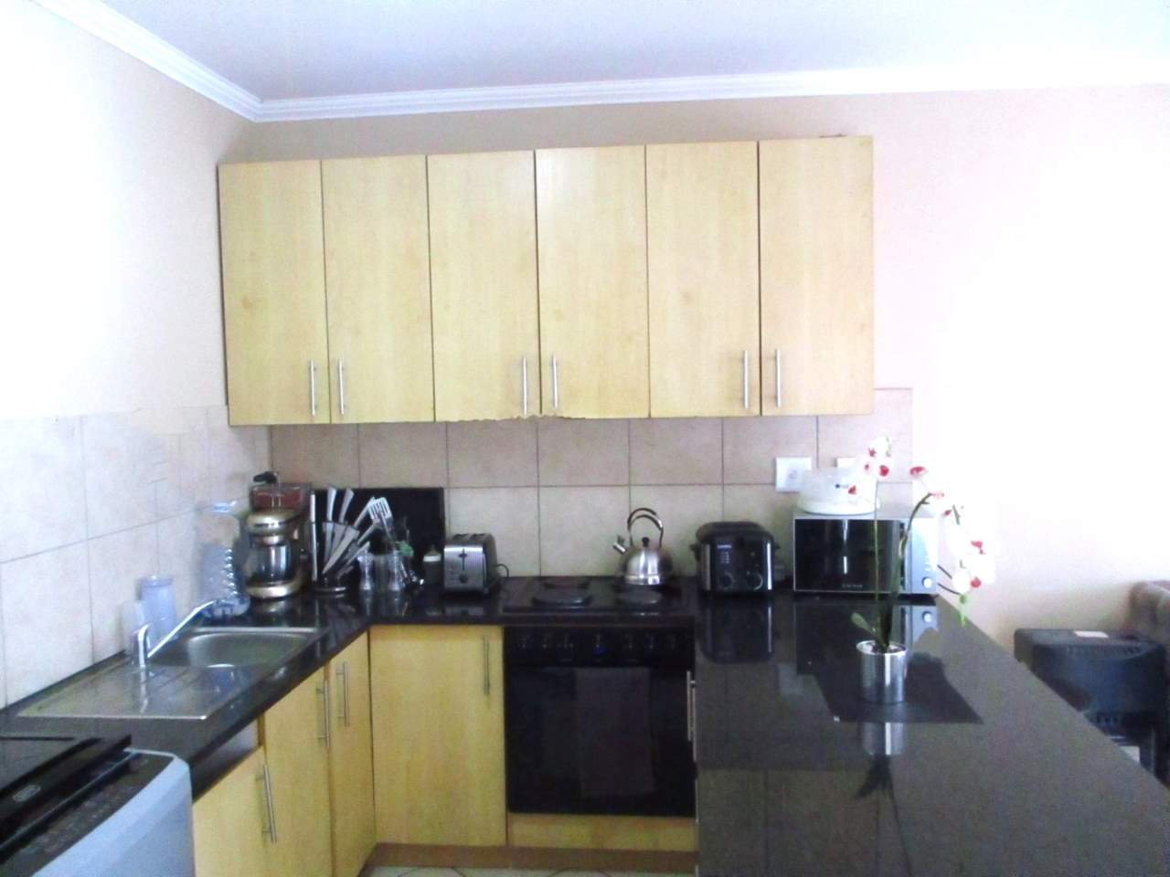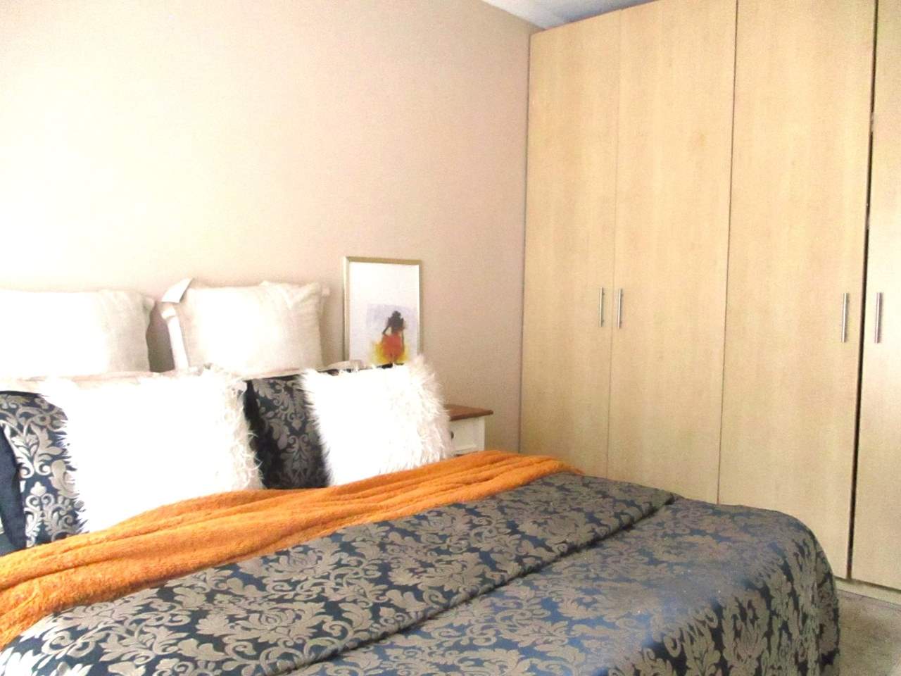 The well-designed kitchen is equipped with granite countertops and flows into a generous living area. Two spacious bedrooms are outfitted with ample built-in wardrobes. Walking distance from Navalsig, ‘ GYS DIE SLAGTER’, Ultra Liquors, SPAR, and PICK AND PAY