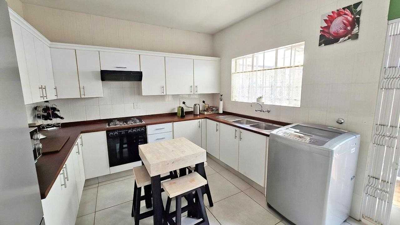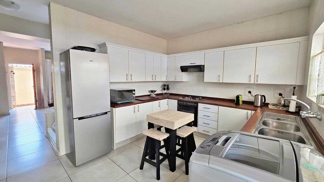 Downstairs: Open-plan lounge flowing into a modern kitchen featuring a gas stove, ample cupboards, and a pantry. Seamless access to a covered patio and private garden—perfect for entertaining or quiet outdoor moments.