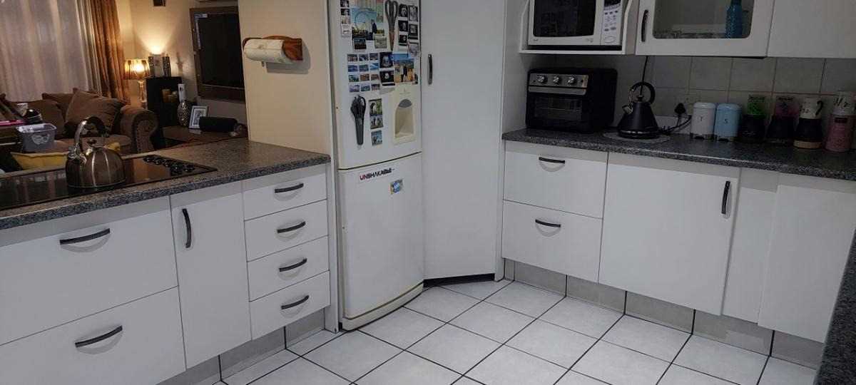 The layout is designed for flow, with the ground floor opening into a warm, welcoming living area that connects effortlessly to the kitchen. From there, the covered braai patio extends your living space, giving you an all-weather spot to entertain, relax, or simply enjoy the breeze. A clever built-in bar beneath the staircase adds extra style without stealing space.