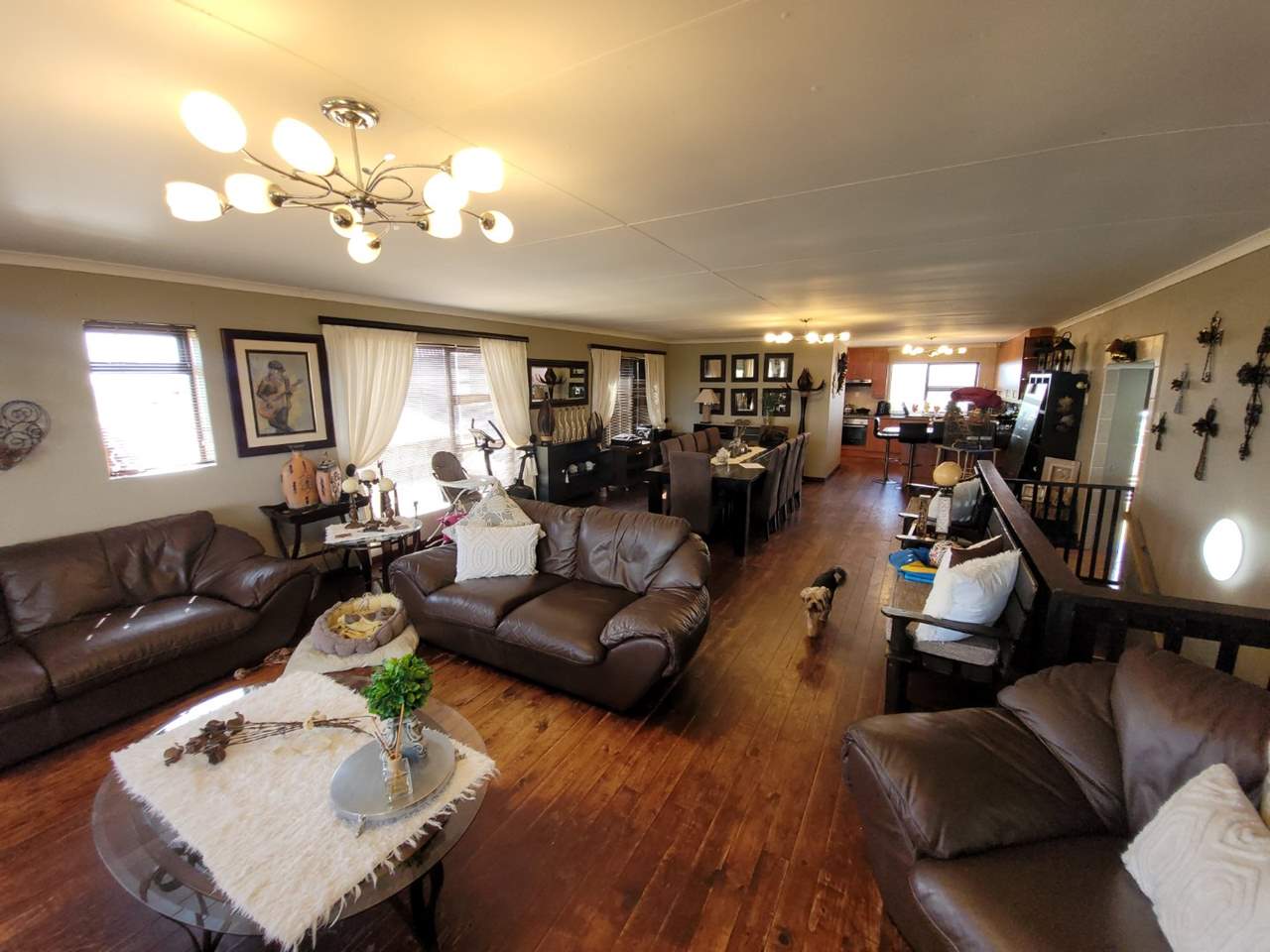 Spacious open-plan lounge and dining area with stunning wooden floors