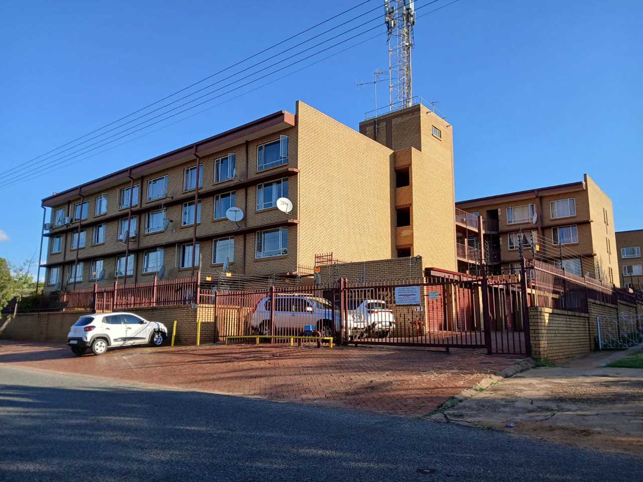 The complex offers remote-controlled access at the main gates, an intercom system at the pedestrian entrance, a lift, and a neatly maintained communal courtyard.
