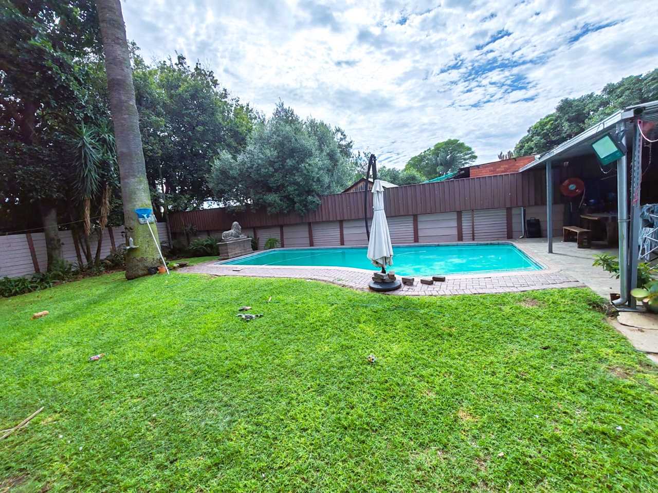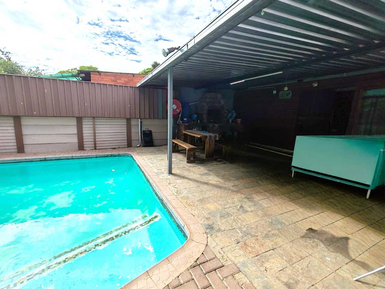 The outdoor area with its inviting pool creates the perfect space for relaxing and entertaining.